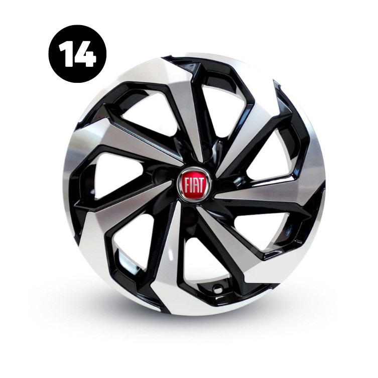 Kit 4 Calotas Spider Aros 13/14/15 Fiat Palio Argo Uno Gran Siena Mobi + Emblemas Resinados