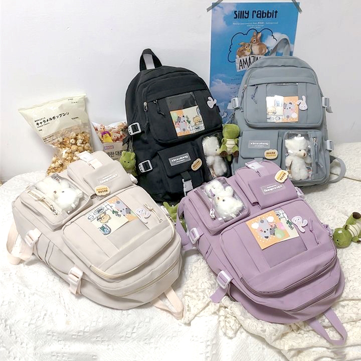 HANVIK Mochila Escolar Unissex De Grande Capacidade, Impermeável, Estilo Coreano E Fashion Para Campus