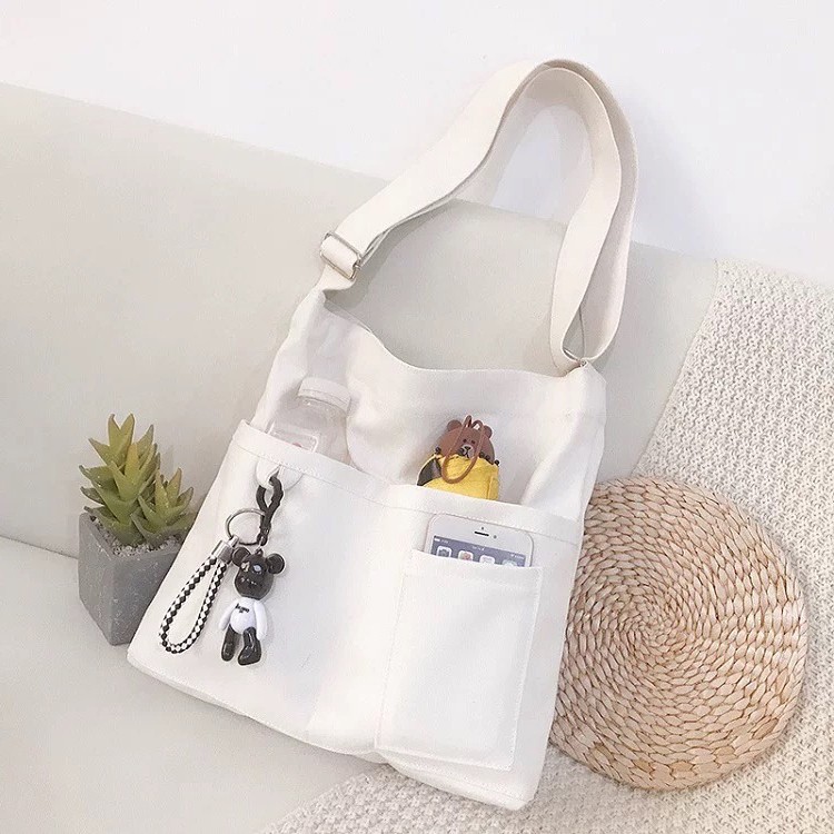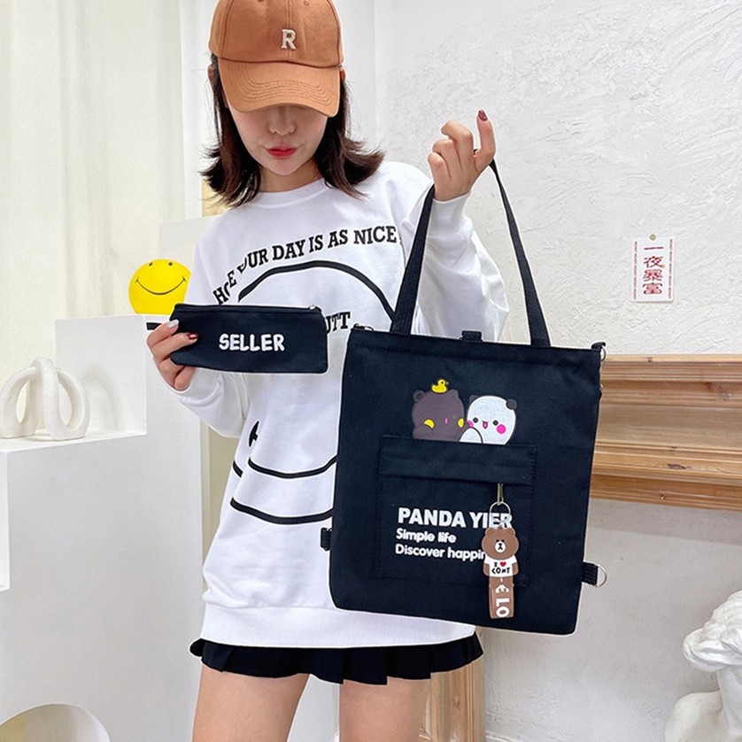 Bolsa Feminina De Lona Estilo Casual / Grande Capacidade, Alça De Mão E Alça Transversal, Versátil E Estilosa