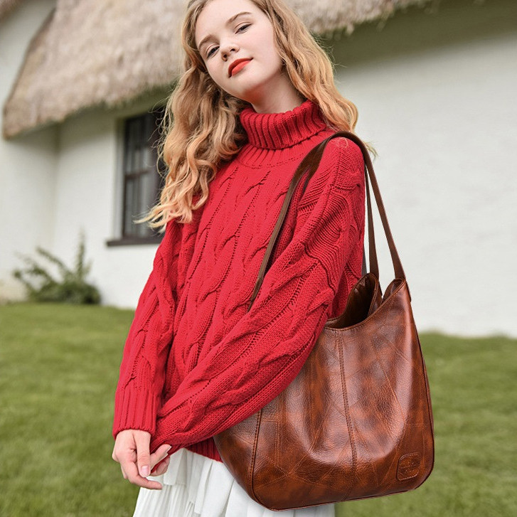 HANVIK Bolsa Feminina de Grande Capacidade em Couro PU Tote Retrô Bolsa de Ombro Estilosa e Bolsa de Mão 2025
