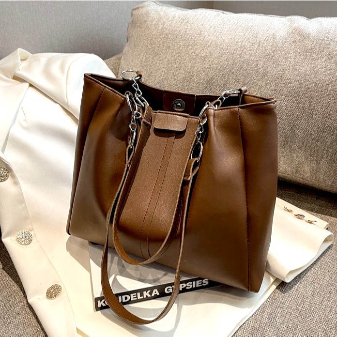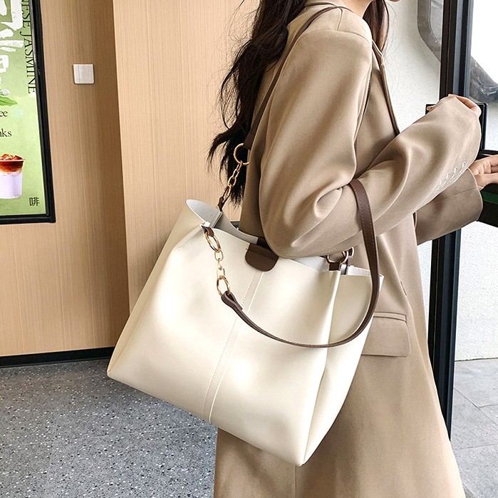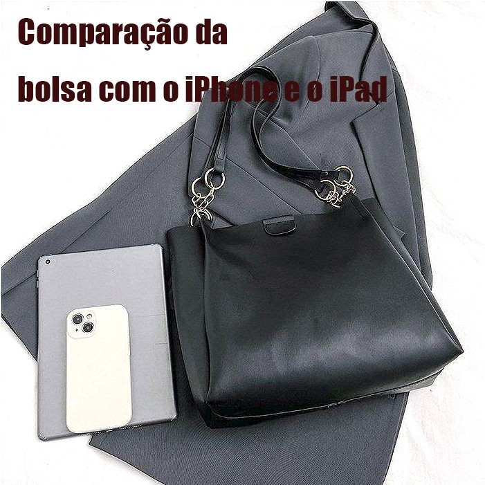 Bolsa Tote Feminina de Couro PU, Grande Capacidade, Estilo Coreano, para Trabalho e Uso Diário – Alça de Ombro e de Mão