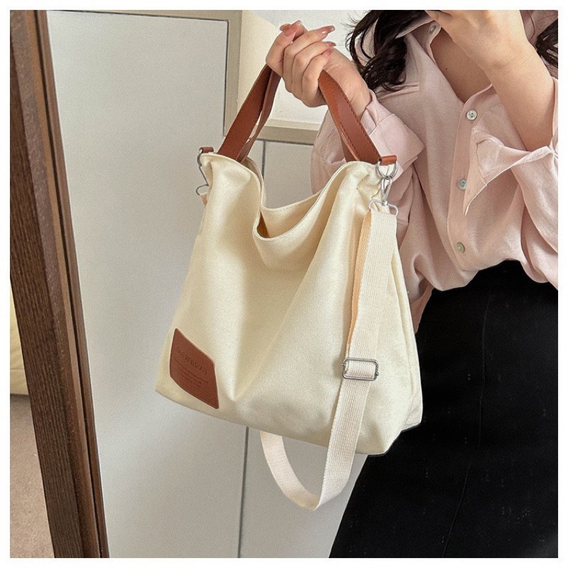 Bolsa Feminina de Lona de Grande Capacidade para Estudantes, Estilo Casual Acadêmico, Bolsa de Mão e de Ombro