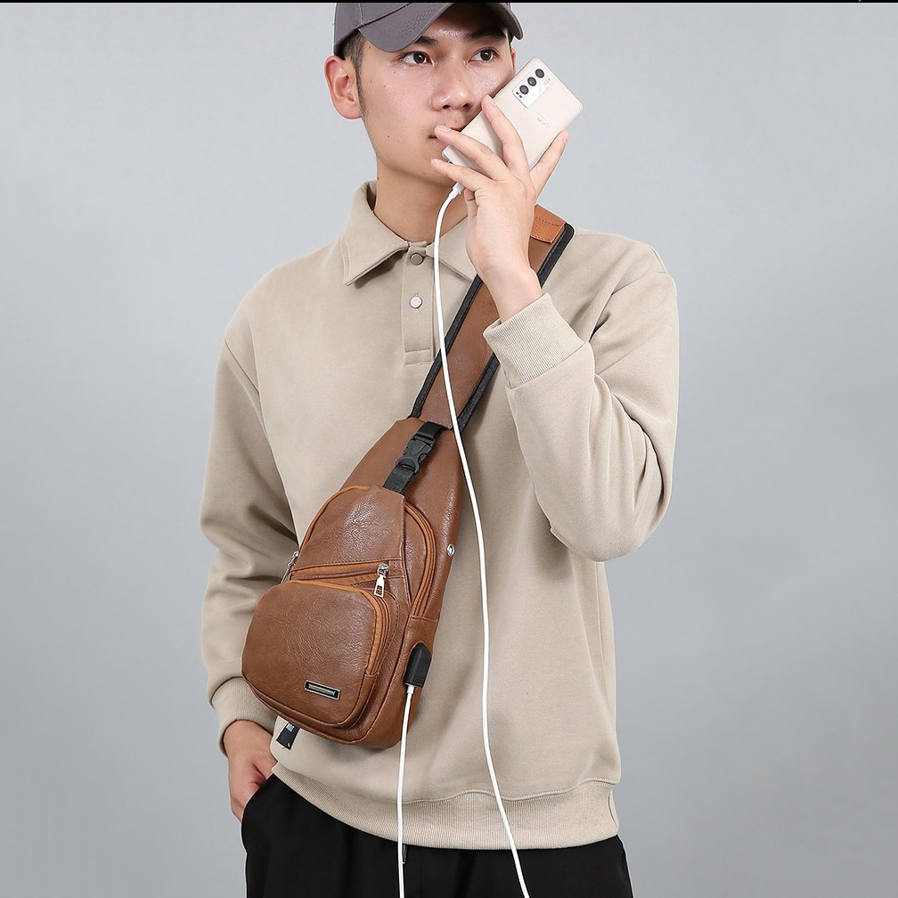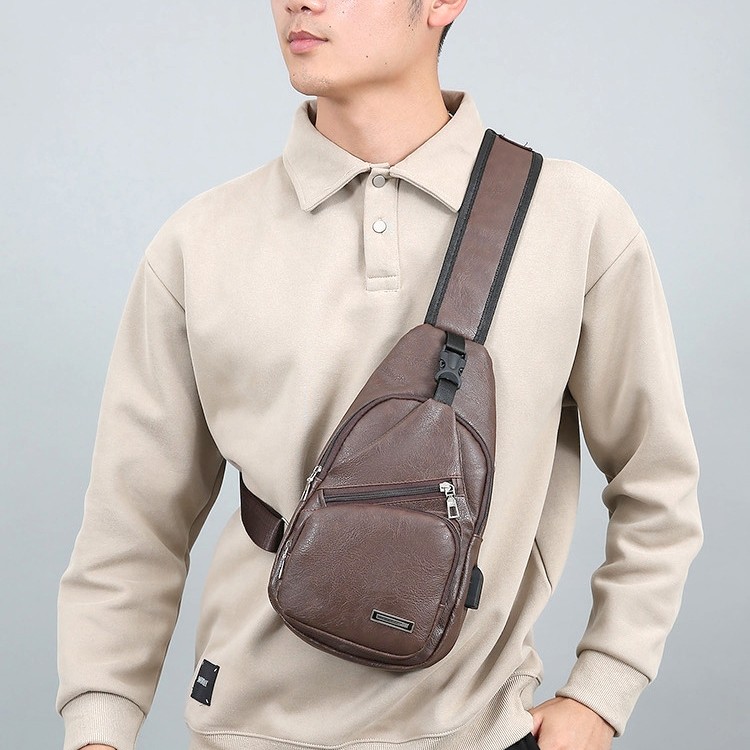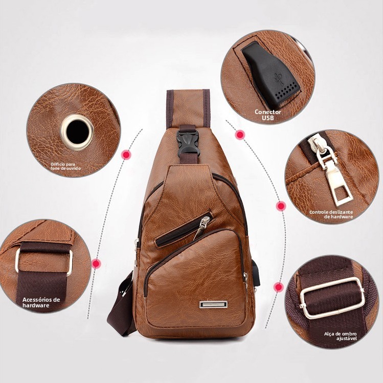 Pochete Couro Masculina Feminina Casual Bolsa De Peito