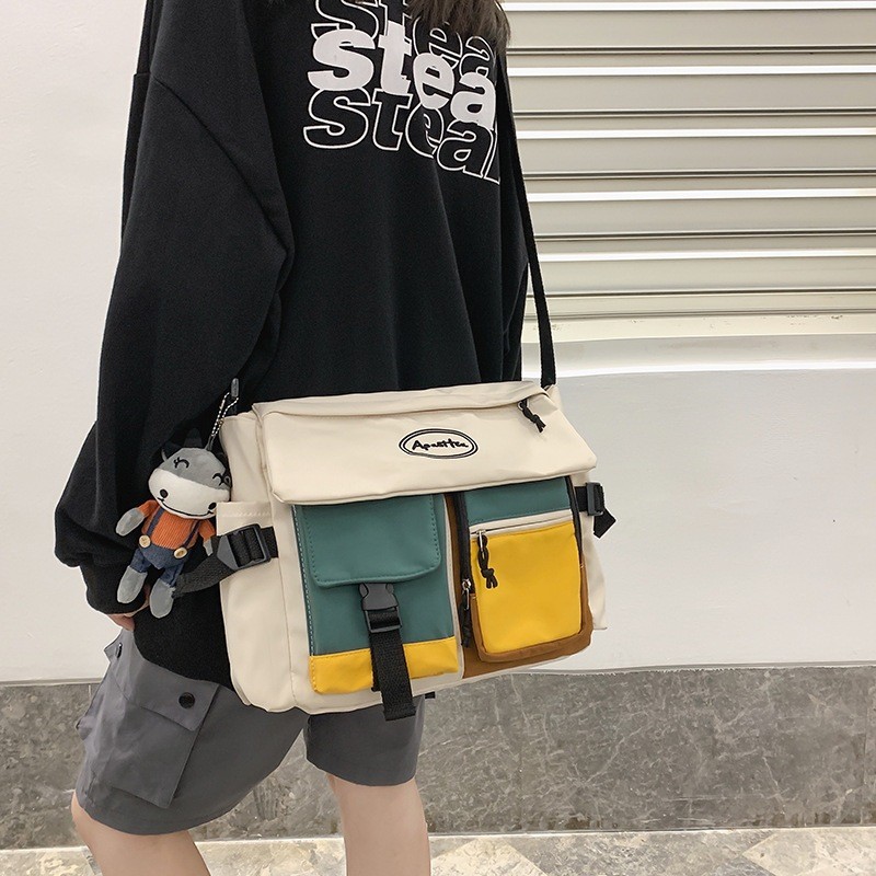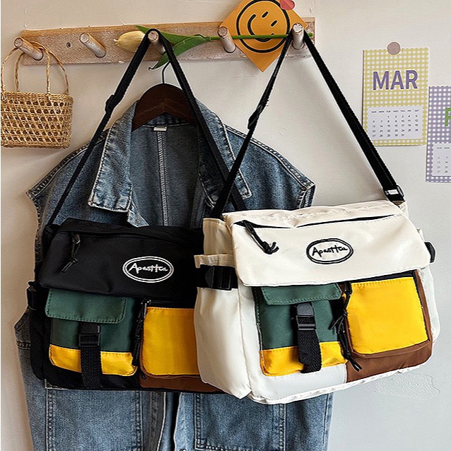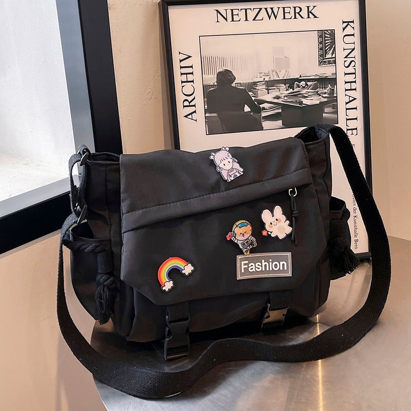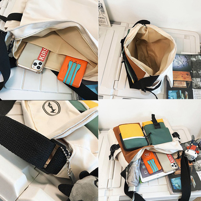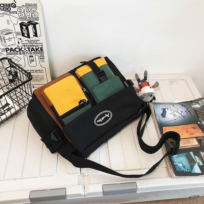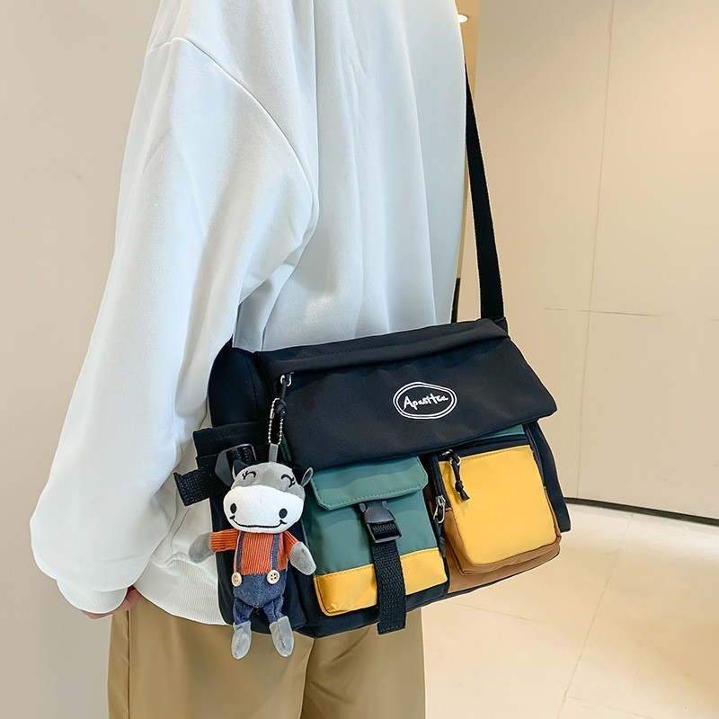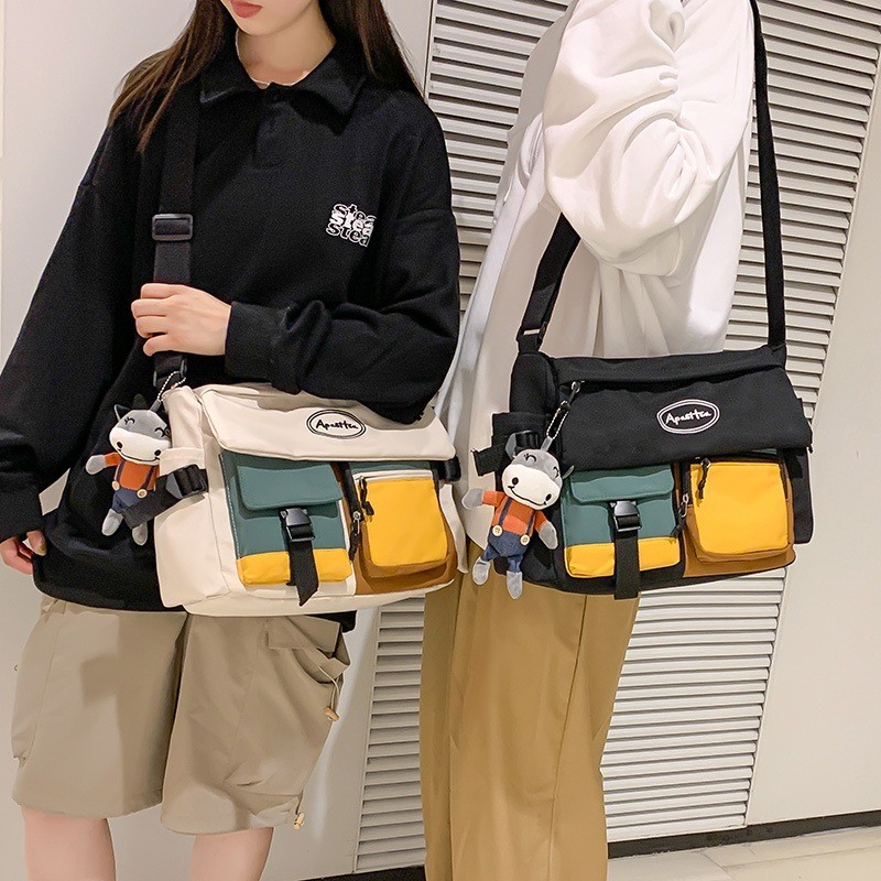 Bolsa Carteiro Unissex de Nylon Impermeável com Alça Lateral – Grande Capacidade para Estudantes