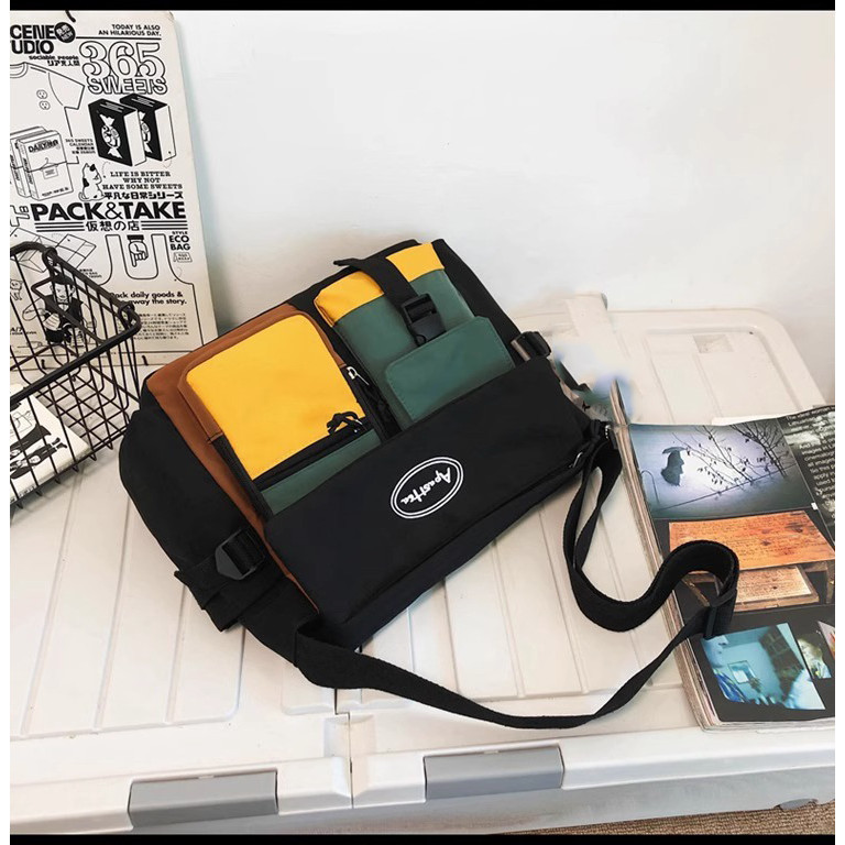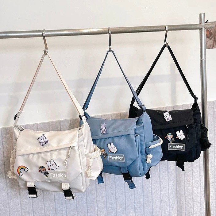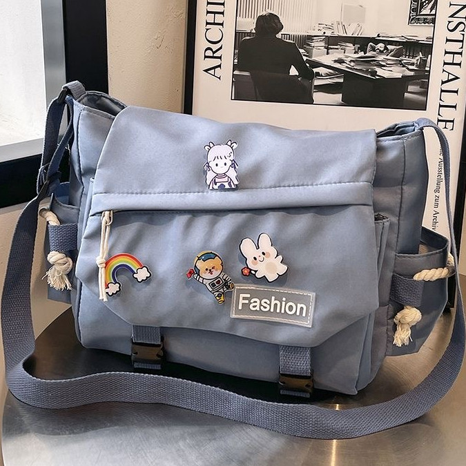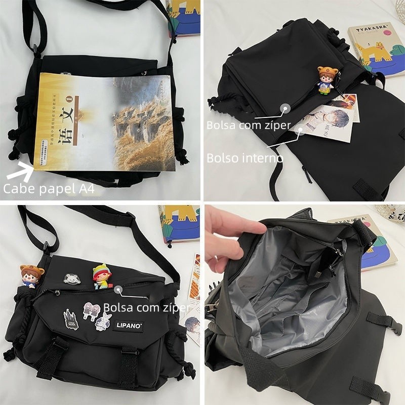 MODIVA Bolsa Transversal de Nylon de Grande Capacidade Unissex Estilo Coreano e Moda Escolar