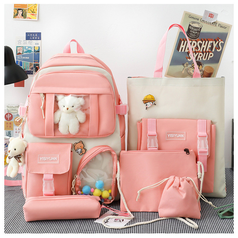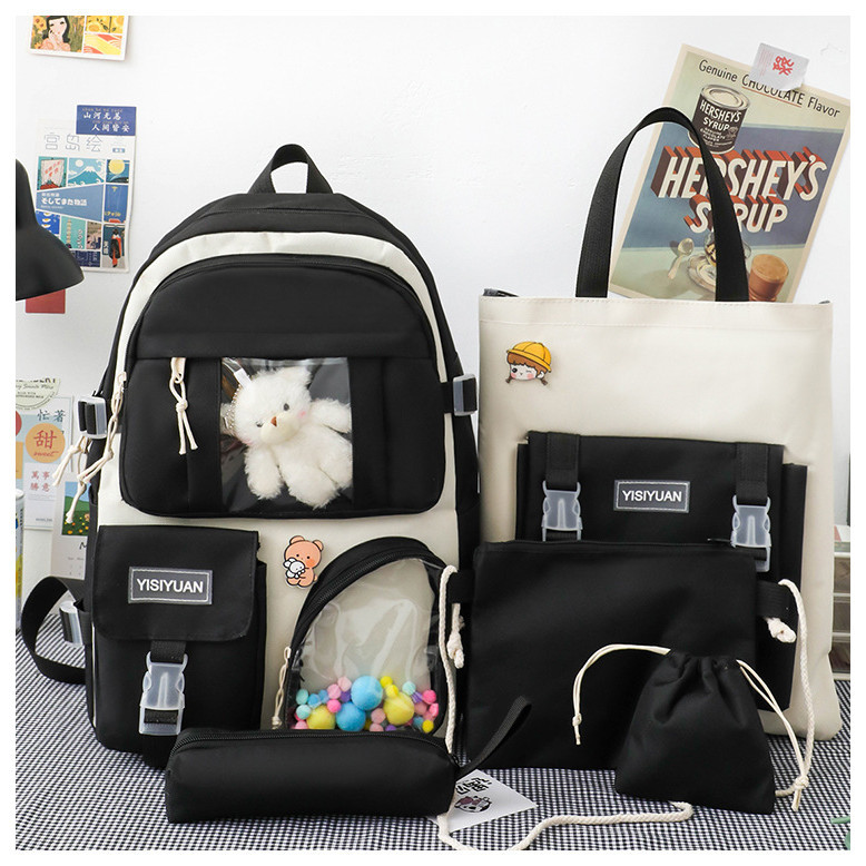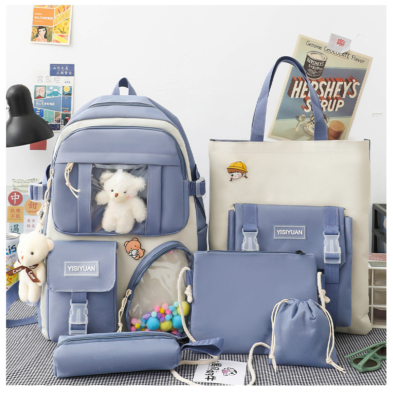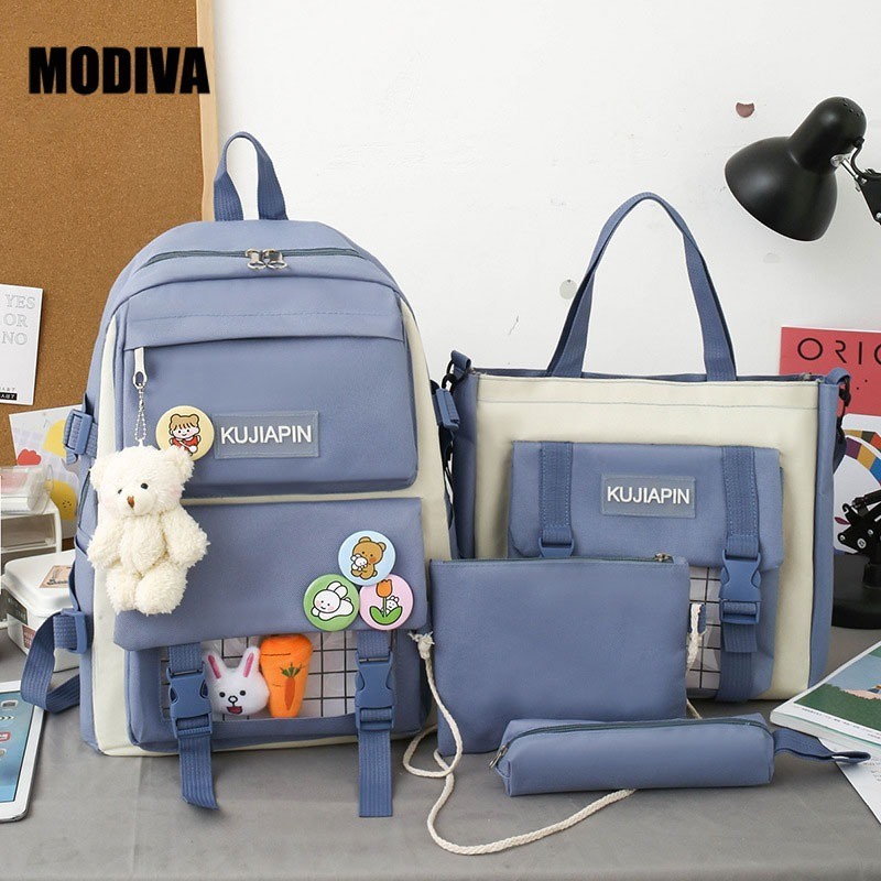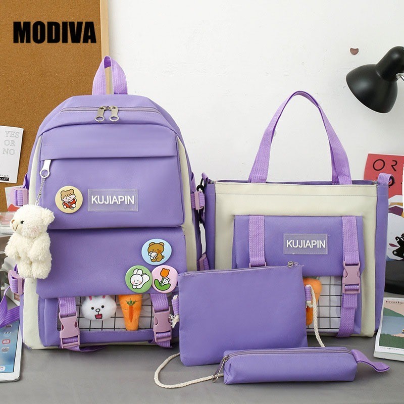 MODIVA Kit 4 Peças Mochila Escolar Unissex Casual Impermeável de Grande Capacidade