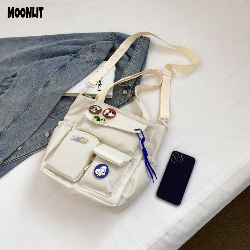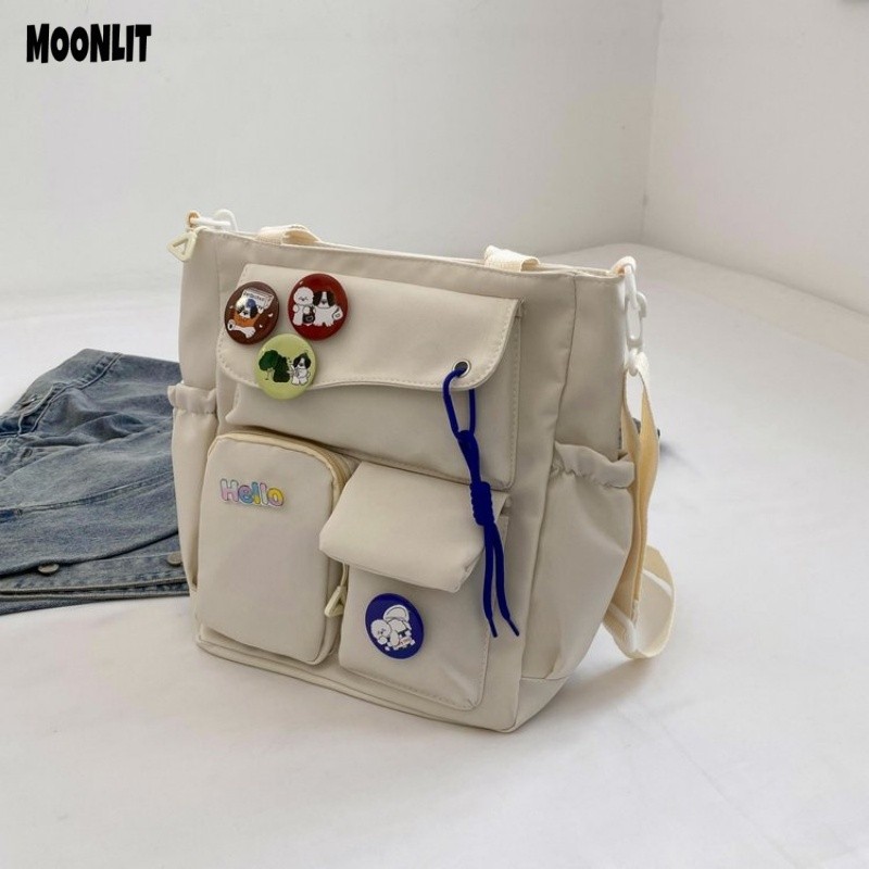 Crachá De Cortesia Unissex Mochila multibolsos Grande Capacidade Crossbody Saco Estudante Cor Sólida Retro Saco De Ombro