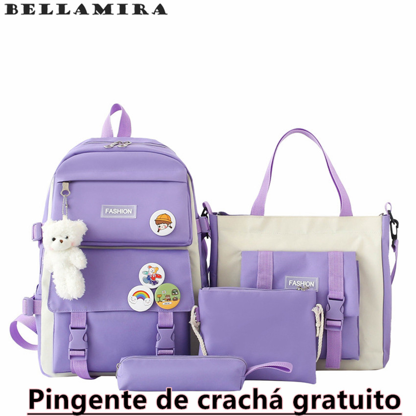KIT 4 Mochila Escolar Multifuncional Escolar Grande Capacidade De Bolsa De Mão Tecido De Nylon Resiste