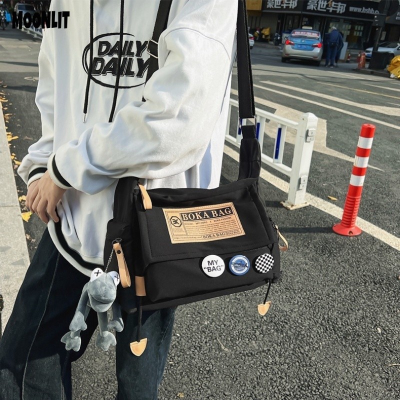 Crachá De Cortesia Unissex Bolsa Mensageiro Retrô Bolsa de Mão com Vários Bolsos Bolsa de Ombro de Grande Capacidade