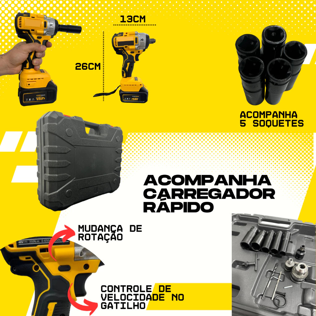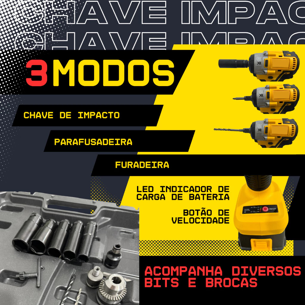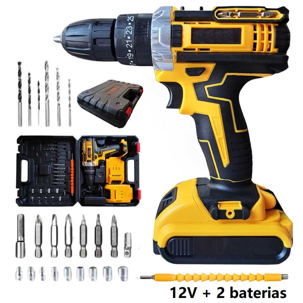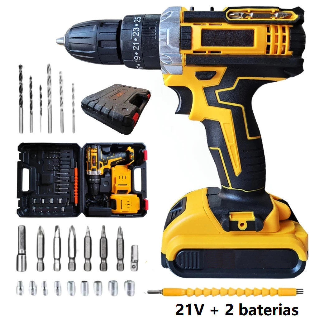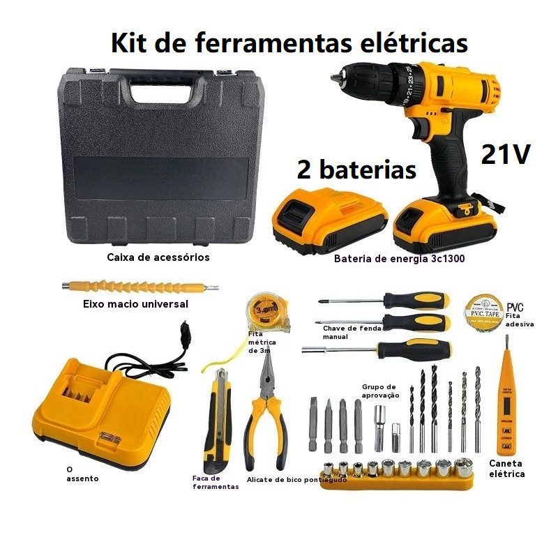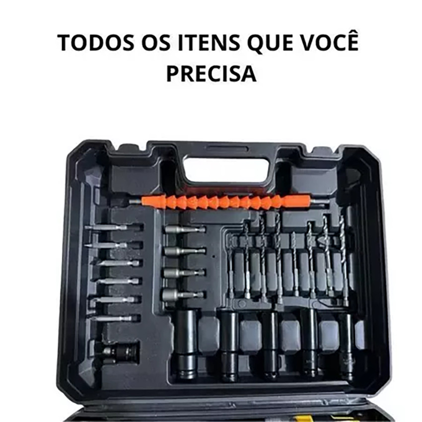 Parafusadeira Furadeira E Chave De Impacto 21V E 2 Baterias Sem Fio Soquetes Com Maleta Profissional