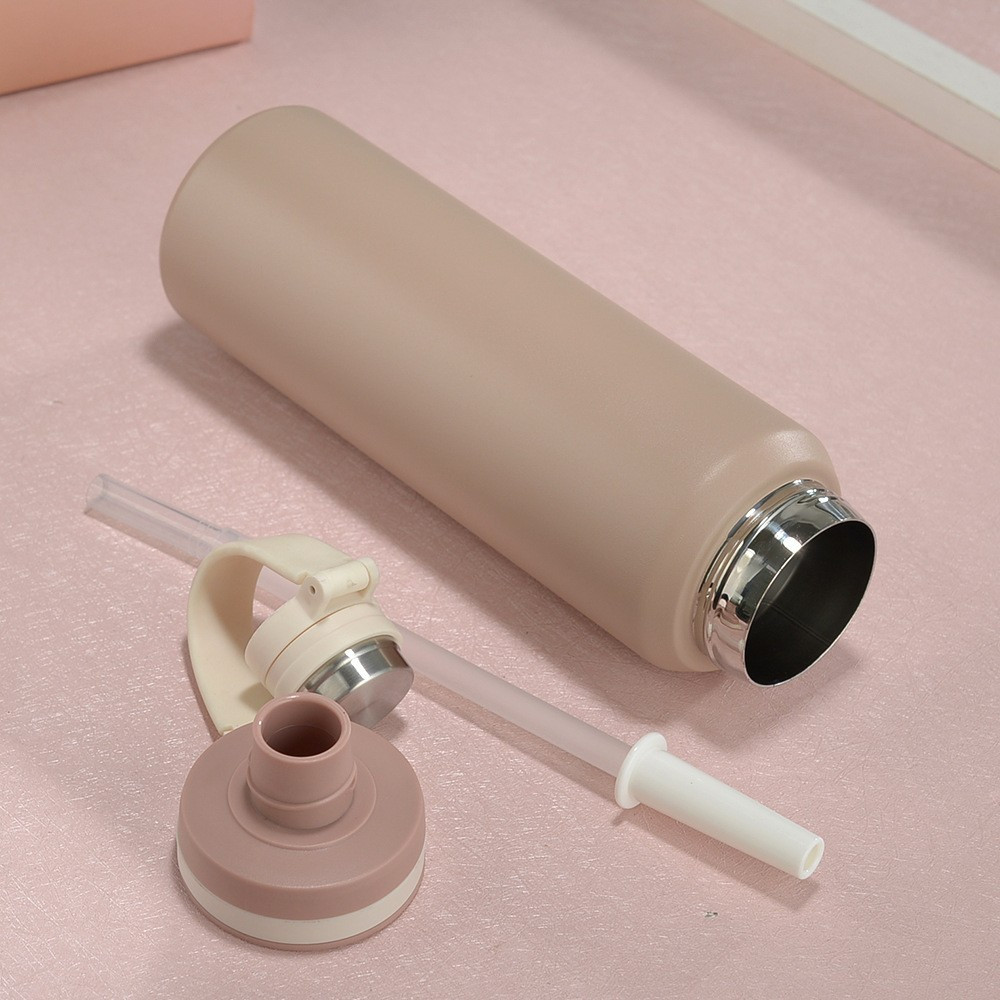 Garrafa Térmica De 800ML Com De Aço Inoxidável Portátil Com Canudo Gratuito Com Alça Ideal Para Esportes