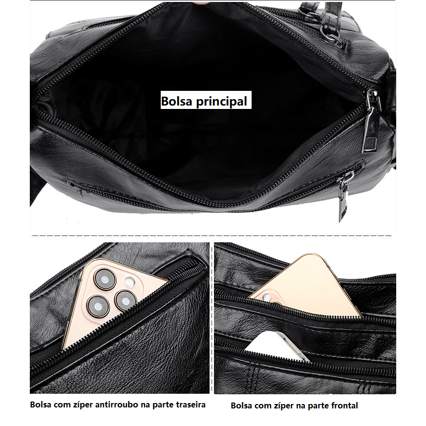 Bolsa De Ombro Tiracolo Transversal De Couro Flexível Impermeável Para Mulheres Casual Média Com Alça