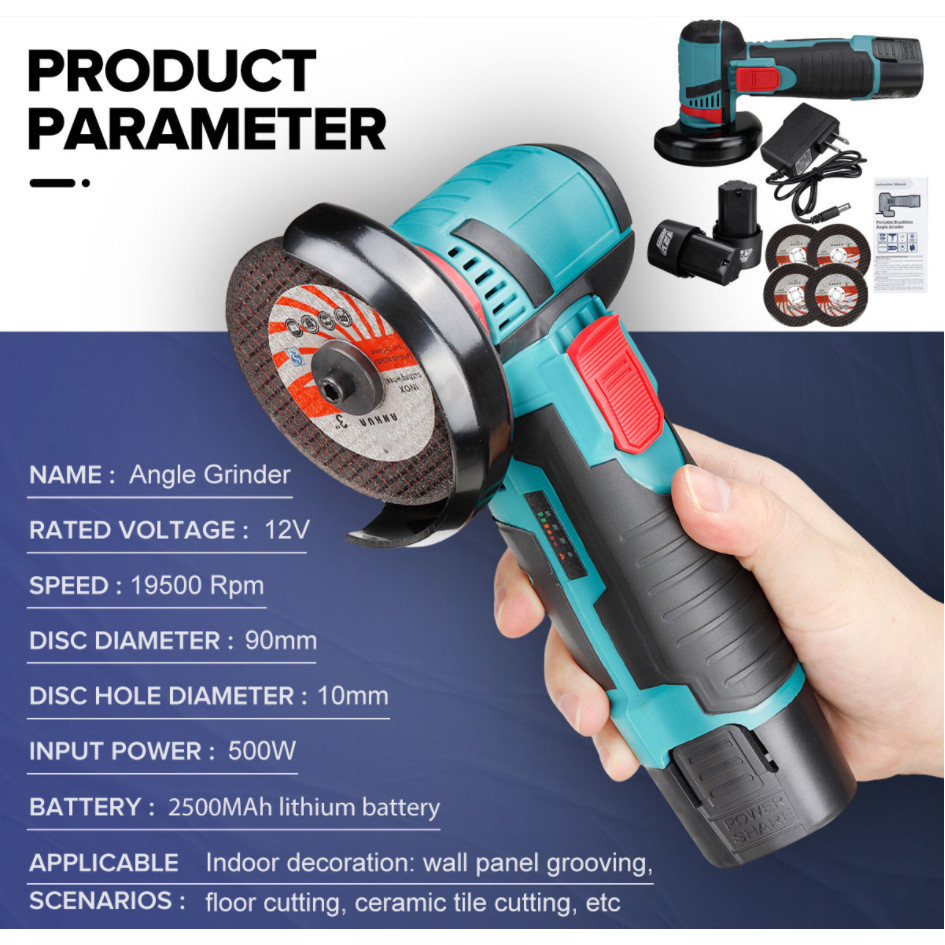 Esmerilhadeira Lixadeira Sem Fio Portátil Serra Mármore A Bateria 12V 1800 Miliampere-M