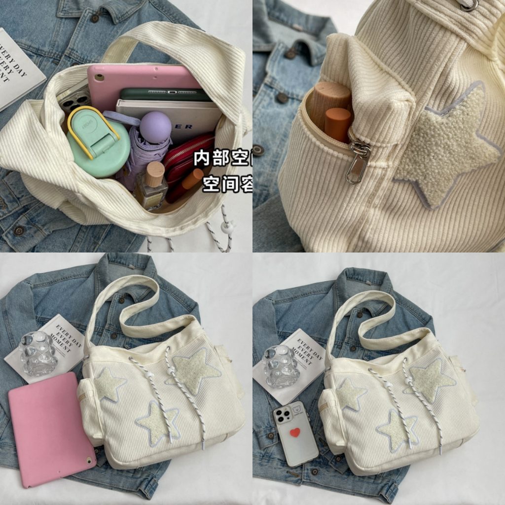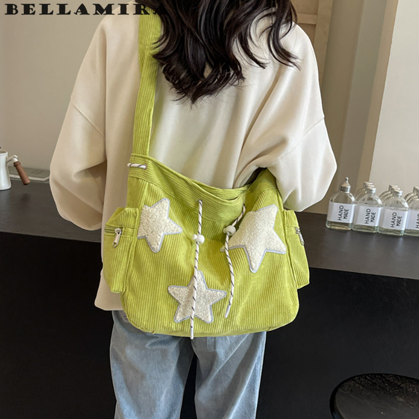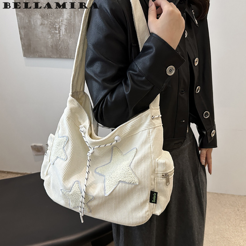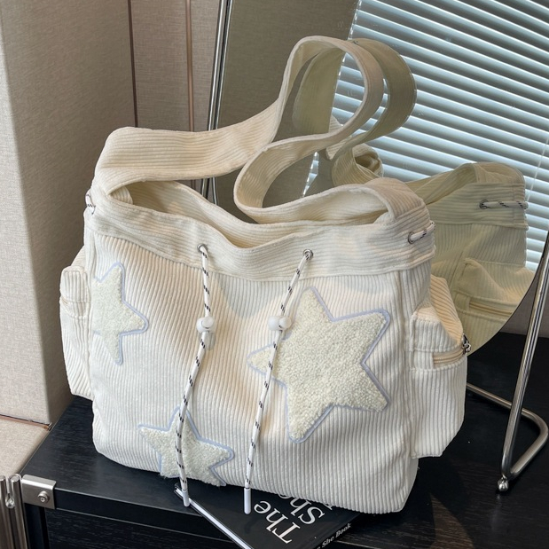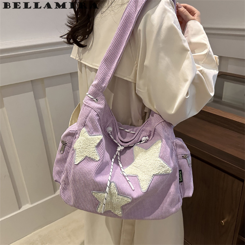 Bolsa Feminina Grande, Bolsa Transversal Bolsa De Ombro Lona Mochila Casual Para Escola Padrão De Design De Estrela - M