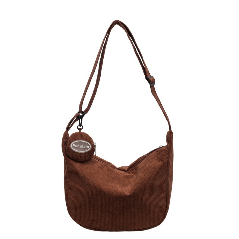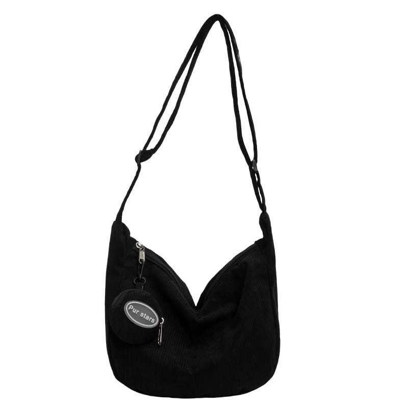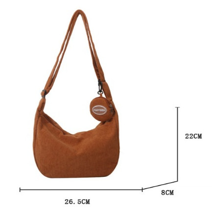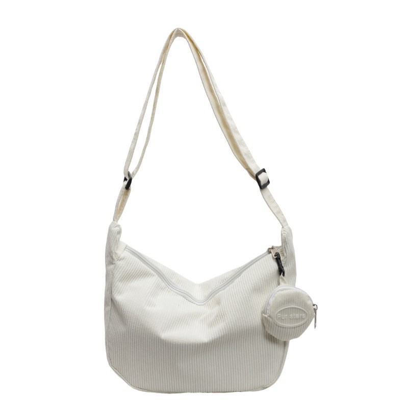 Bolsa transversal de veludo cotelê, grande capacidade, vários bolsos, leve, fecho de zíper