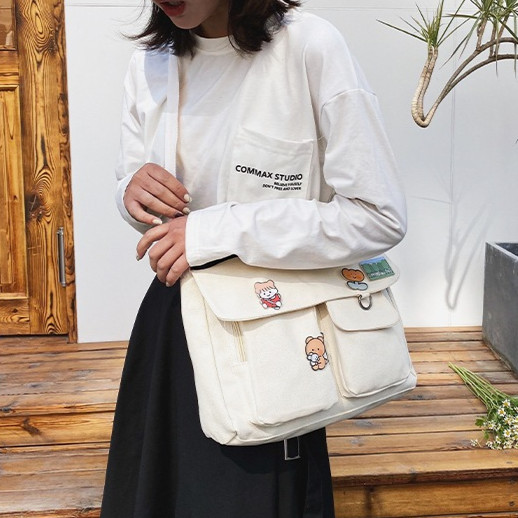 Bolsa Louca Harajuku De Estudante Ombro Retrô De Lona Para Meninas