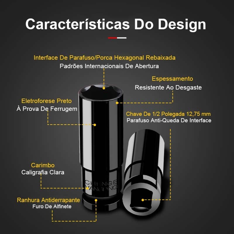 Jogo de Soquetes de Impacto Longo 1/2, 15 Peças 8–32 mm Sextavado com Maleta, para Estudantes