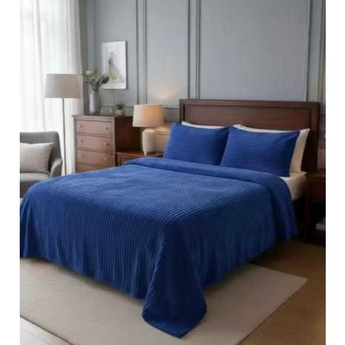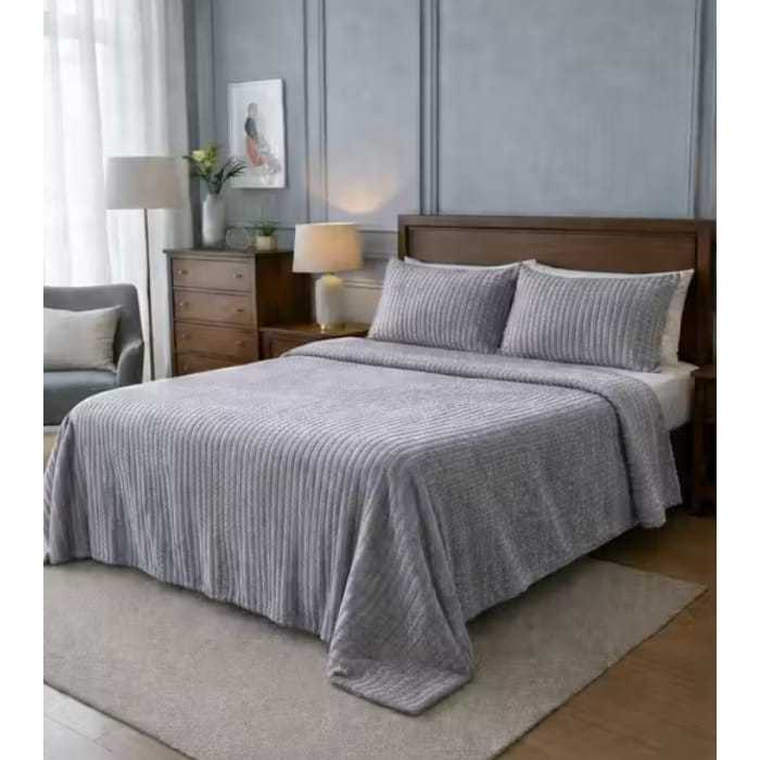 Kit Cobre Leito Colcha Canelada Queen 3Peças ( 2,50m x 2,30m)+2Fronhas-Fannel Premium Aveludado