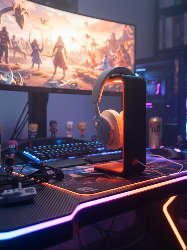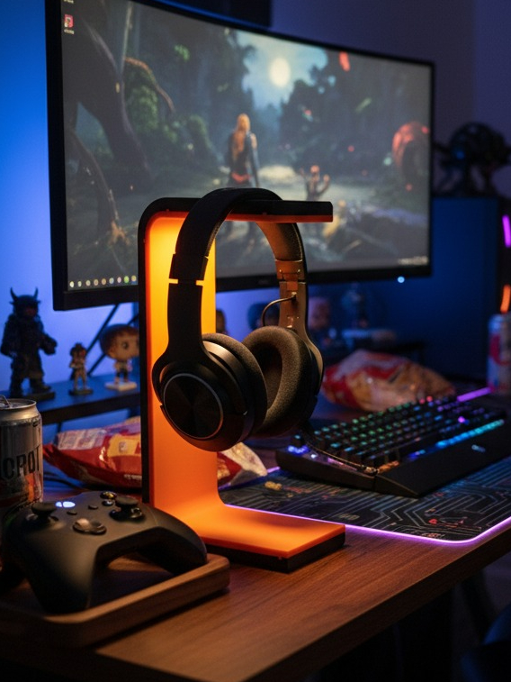 Suporte para Headset Gamer com LED | Organizador de Mesa para Fone