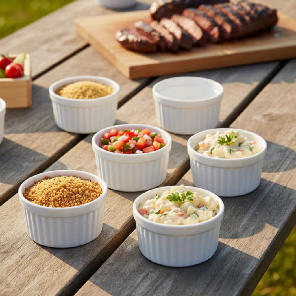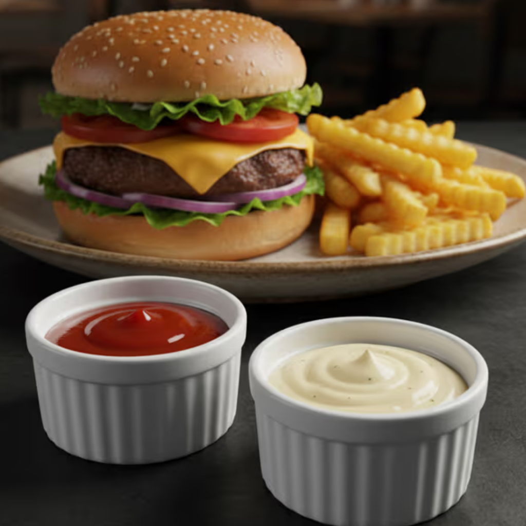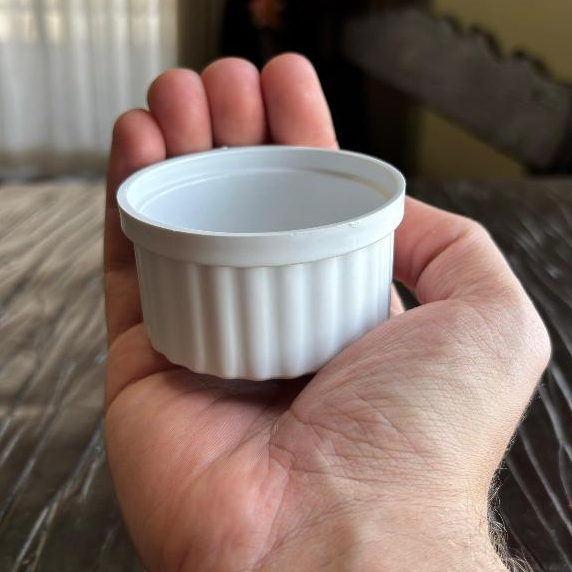 Ramekin Plástico Reutilizável Canelado para Molhos, Porções, Petiscos, Sobremesas.