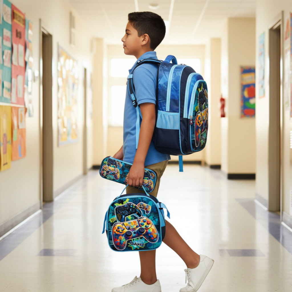 Kit Escolar Infantil 3 Peças – Mochila, Lancheira e Estojo com 26 Modelos Ideais para Presente de Natal