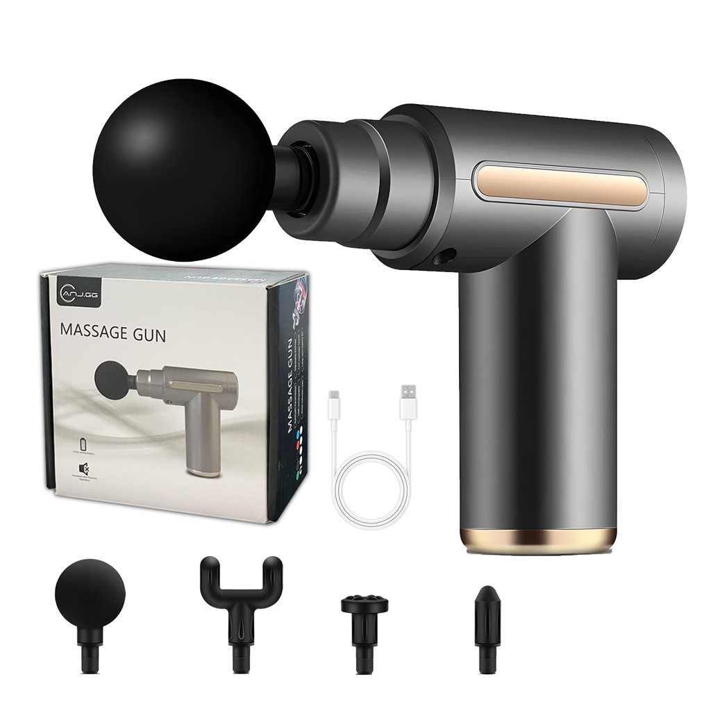 Massageador Muscular Elétrico Portátil USB Recarregável com 4 Ponteiras Relaxamento Profundo
