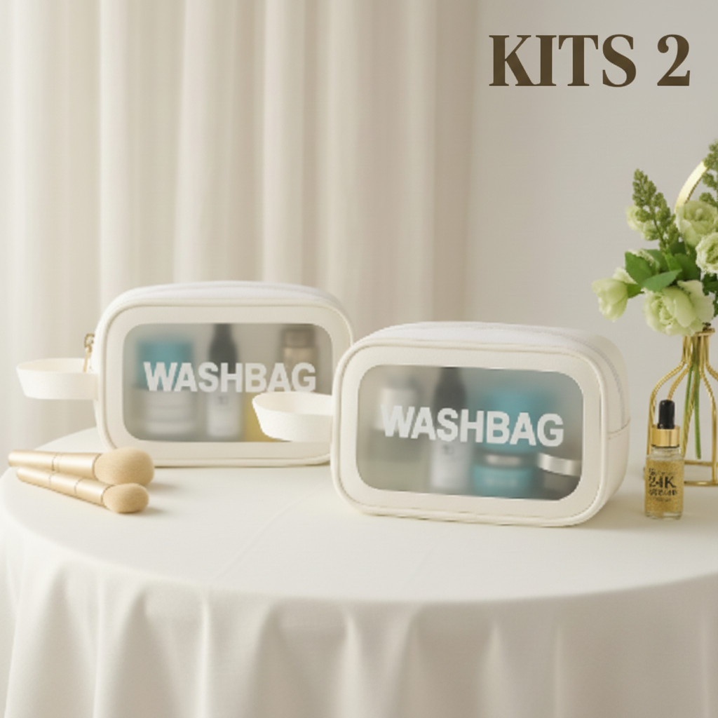 Kits 2 Bolsa Necessaire Washbag PVC Transparente Impermeável Para Maquiagem Viagem Cosméticos Organização Prática
