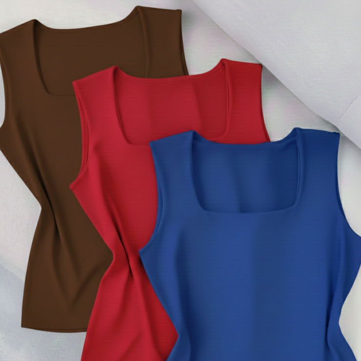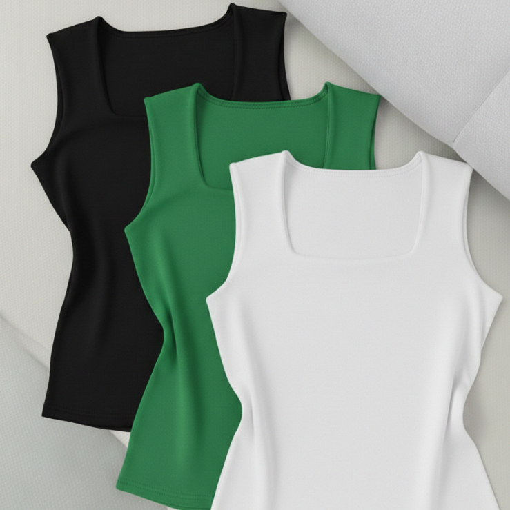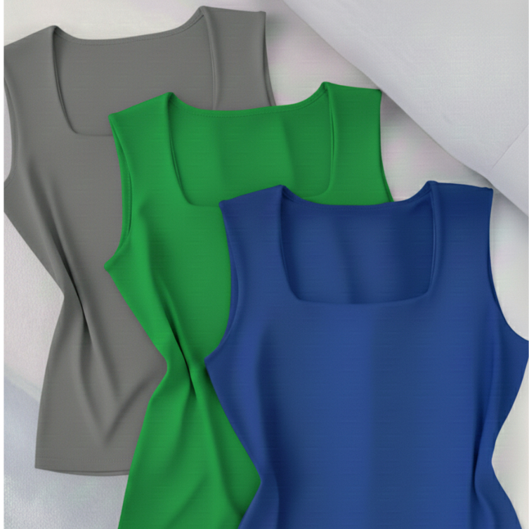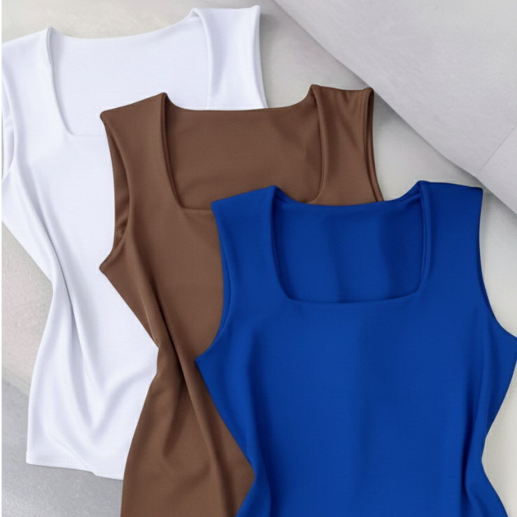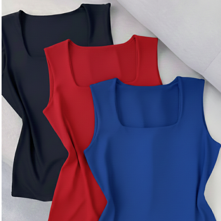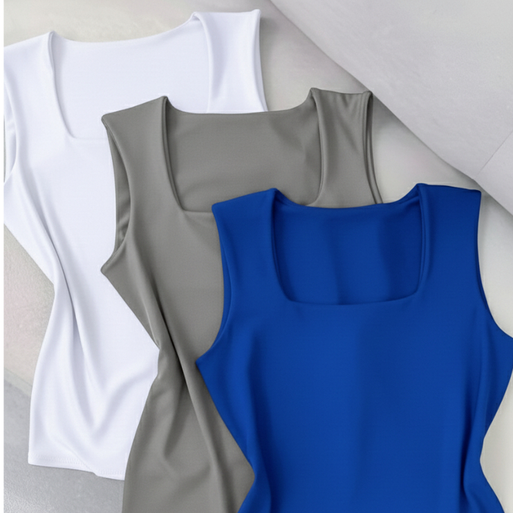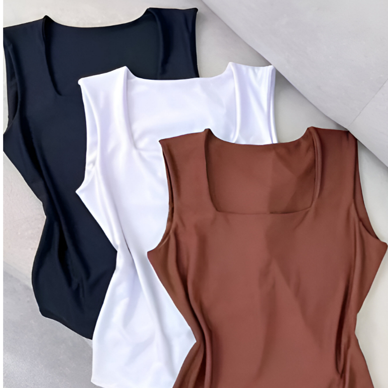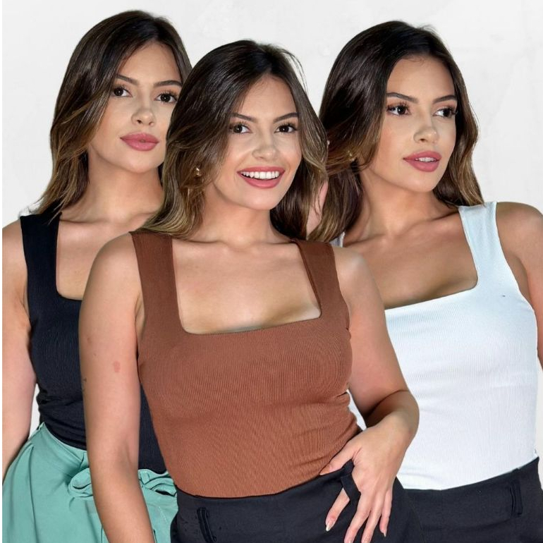 Kit 3 Blusinhas Regata Feminina Decote Quadrado Tecido Suplex Verão 2026