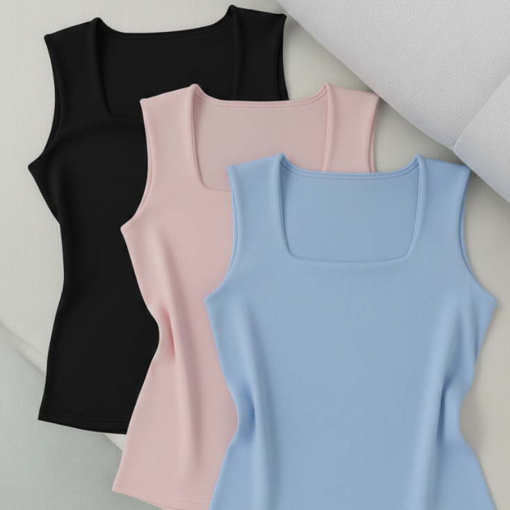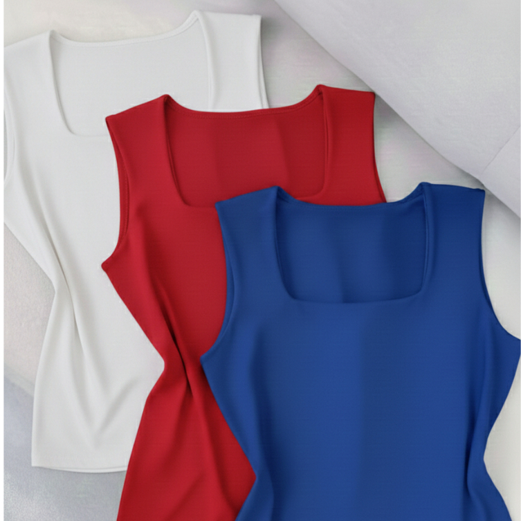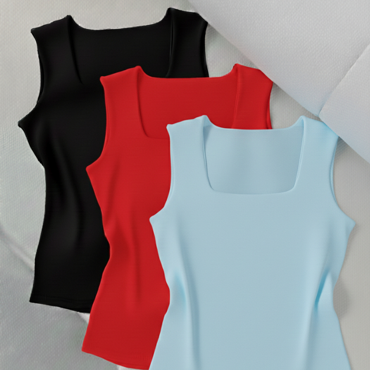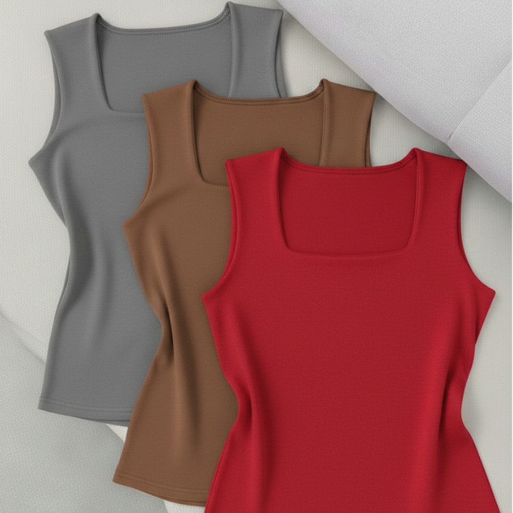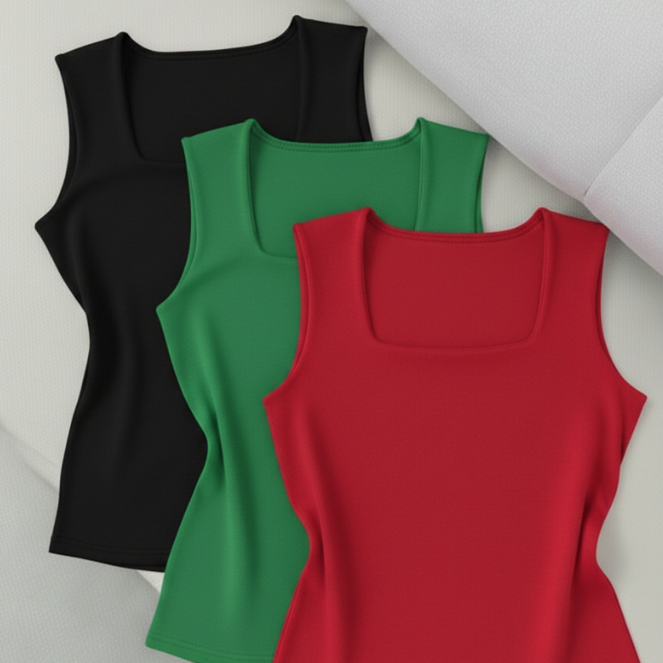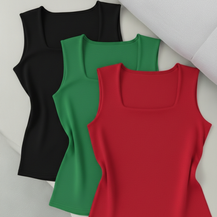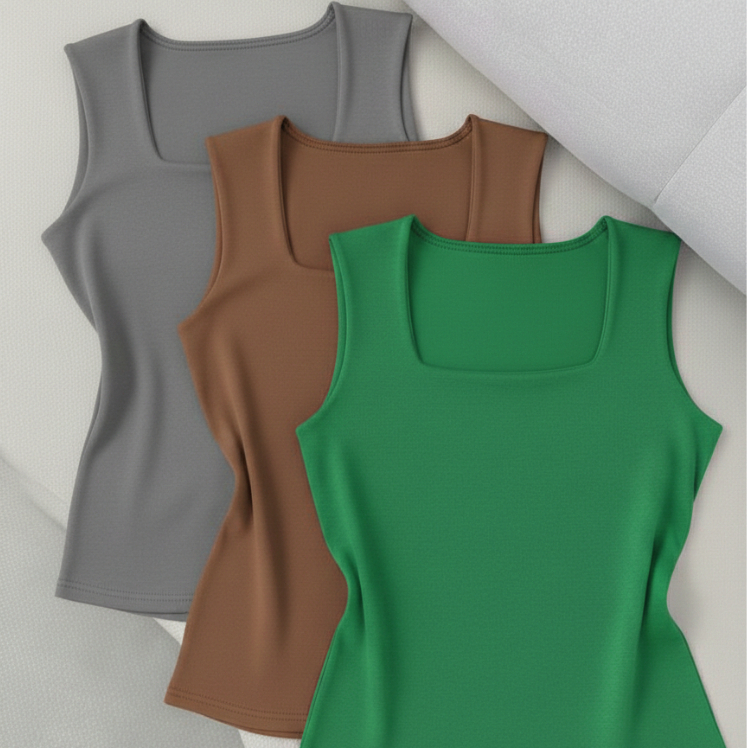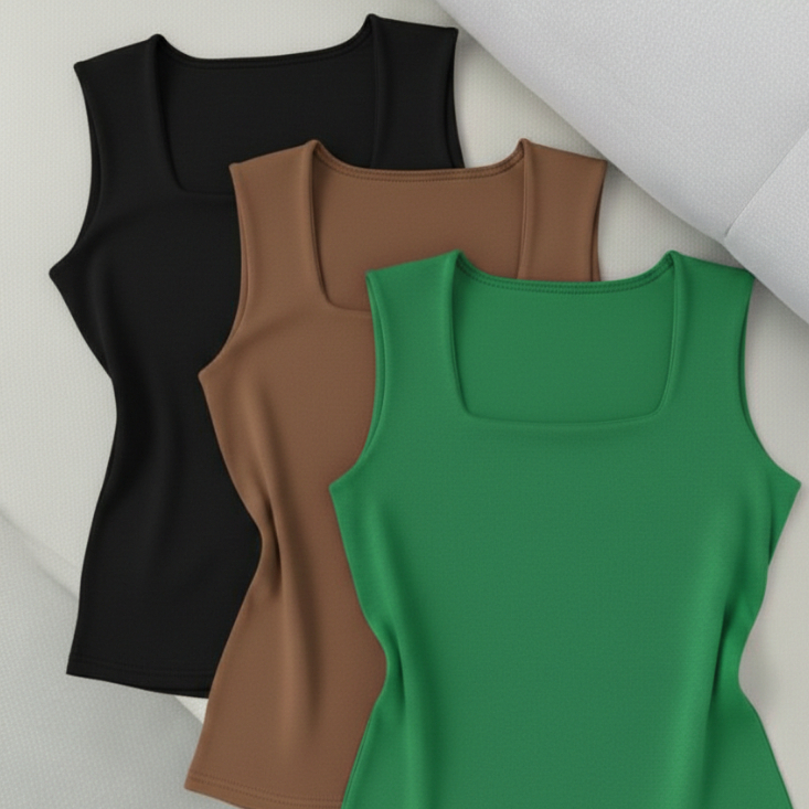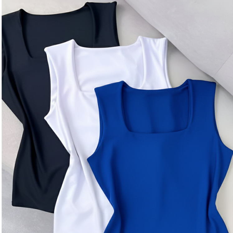 Kit 3 Blusinhas Regata Feminina Decote Quadrado Tecido Suplex Verão 2026
