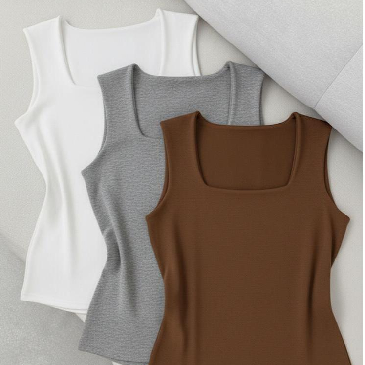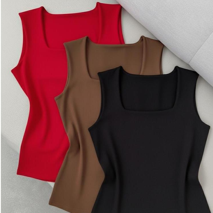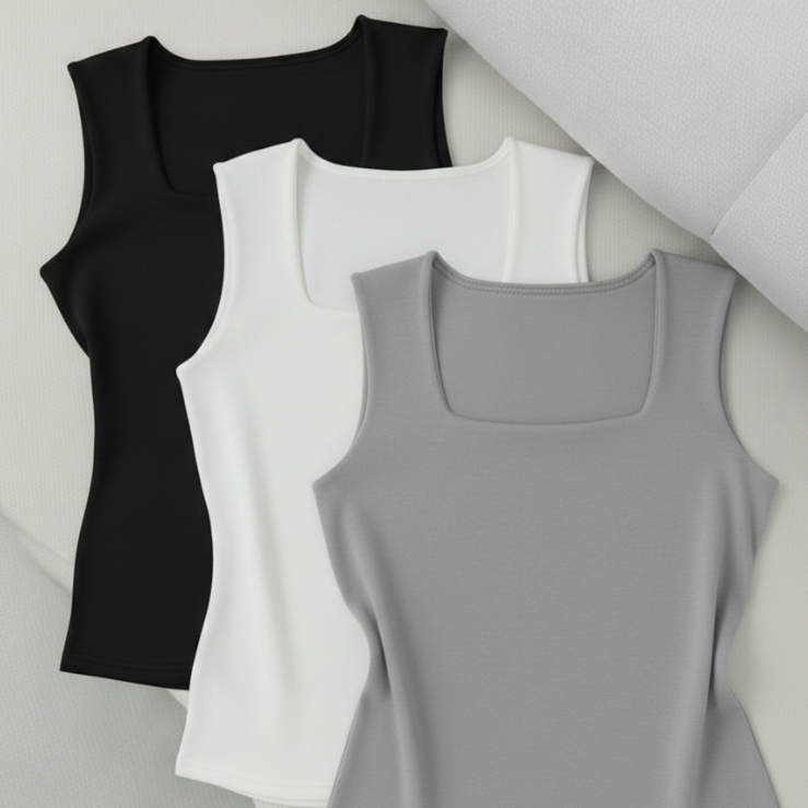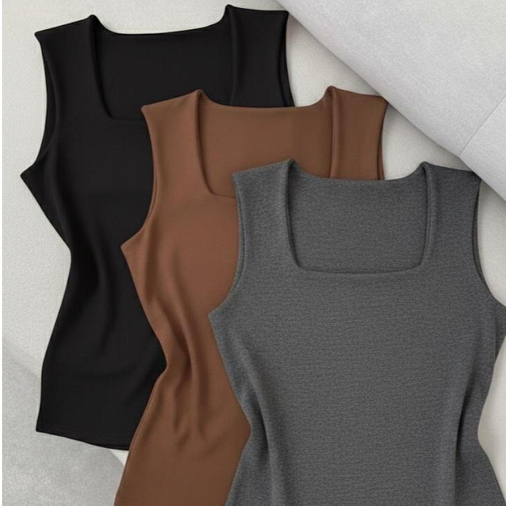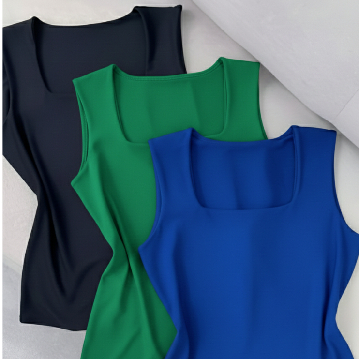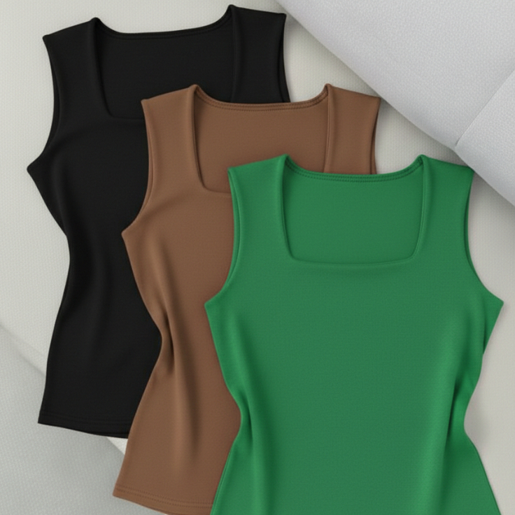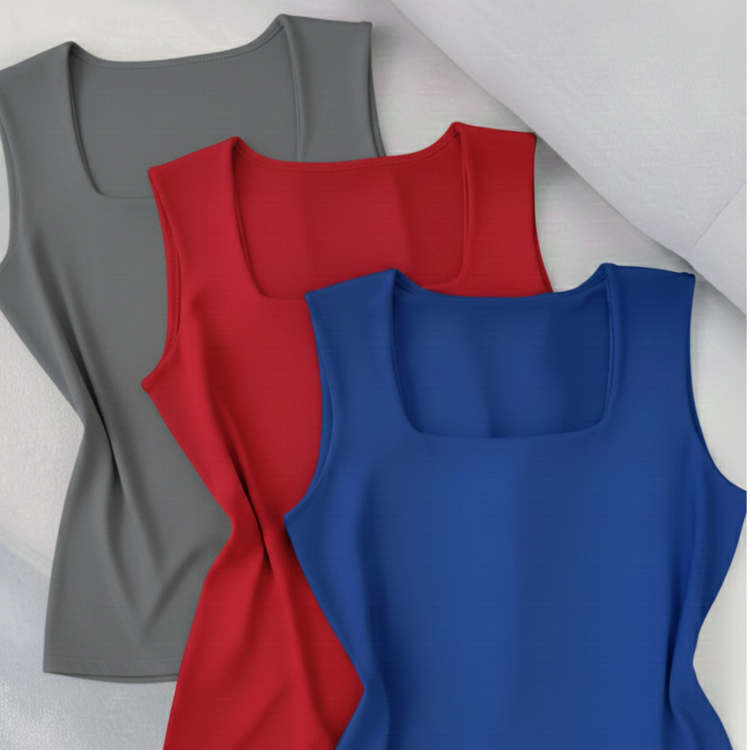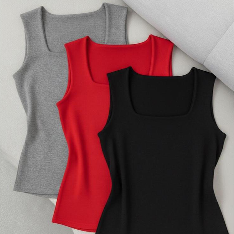 Kit 3 Blusinhas Regata Feminina Decote Quadrado Tecido Suplex Verão 2026