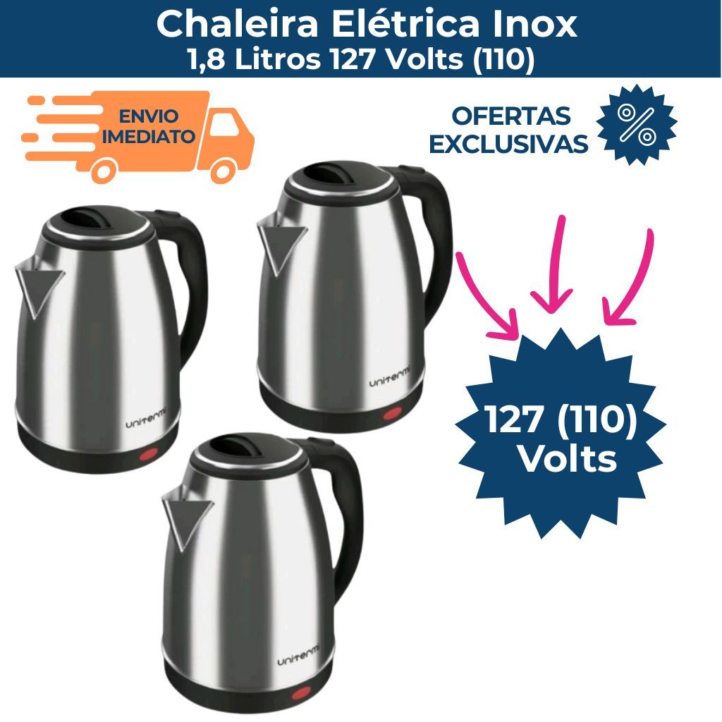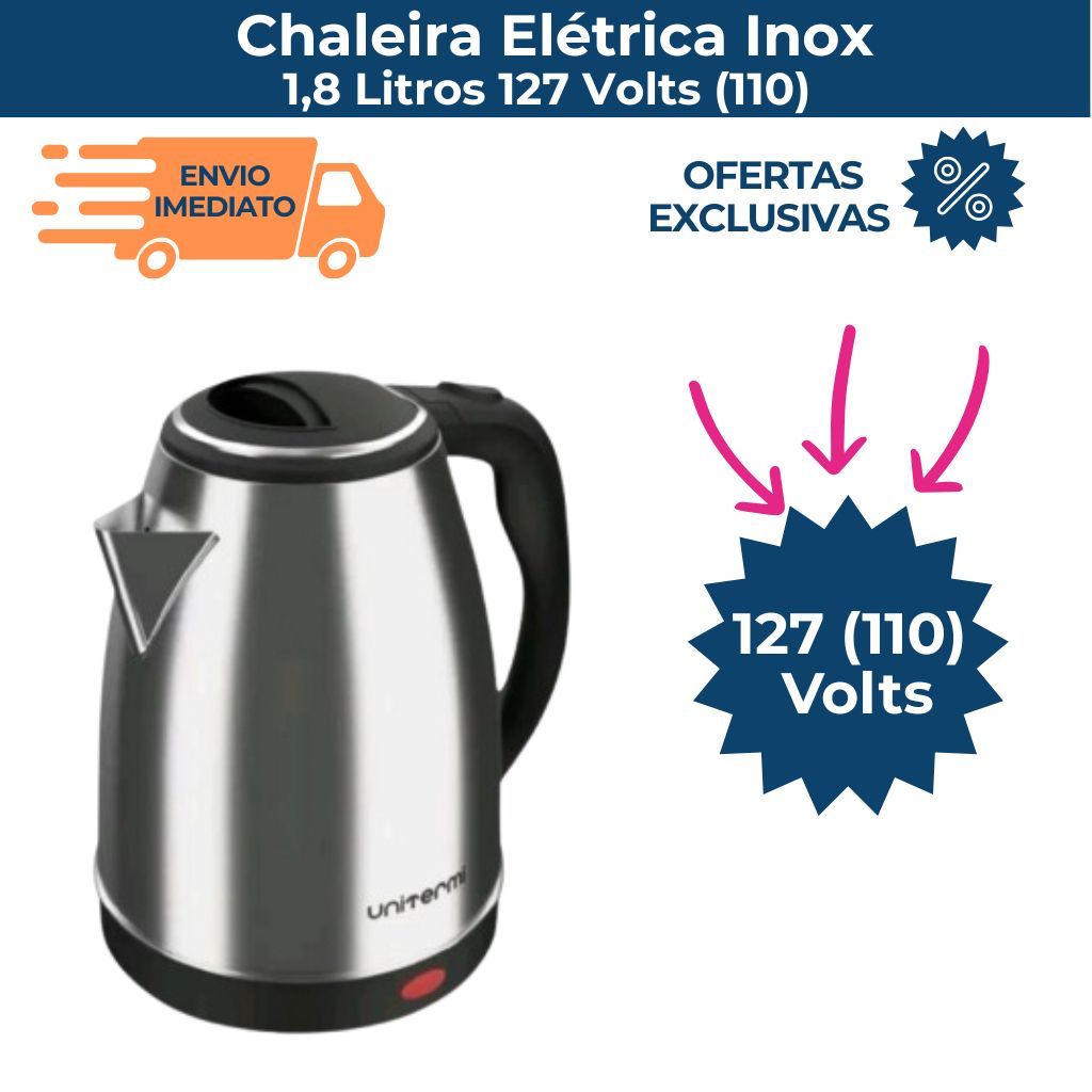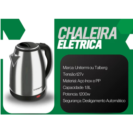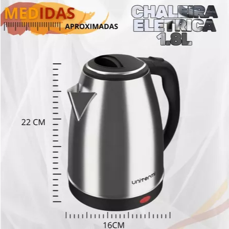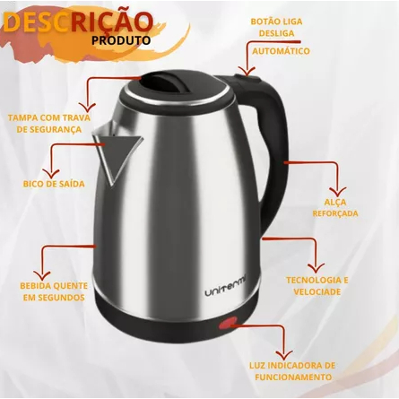 Chaleira Elétrica Unitermi Inox 1,8L 1200W Base Giratória Desligamento Automático Café 127v