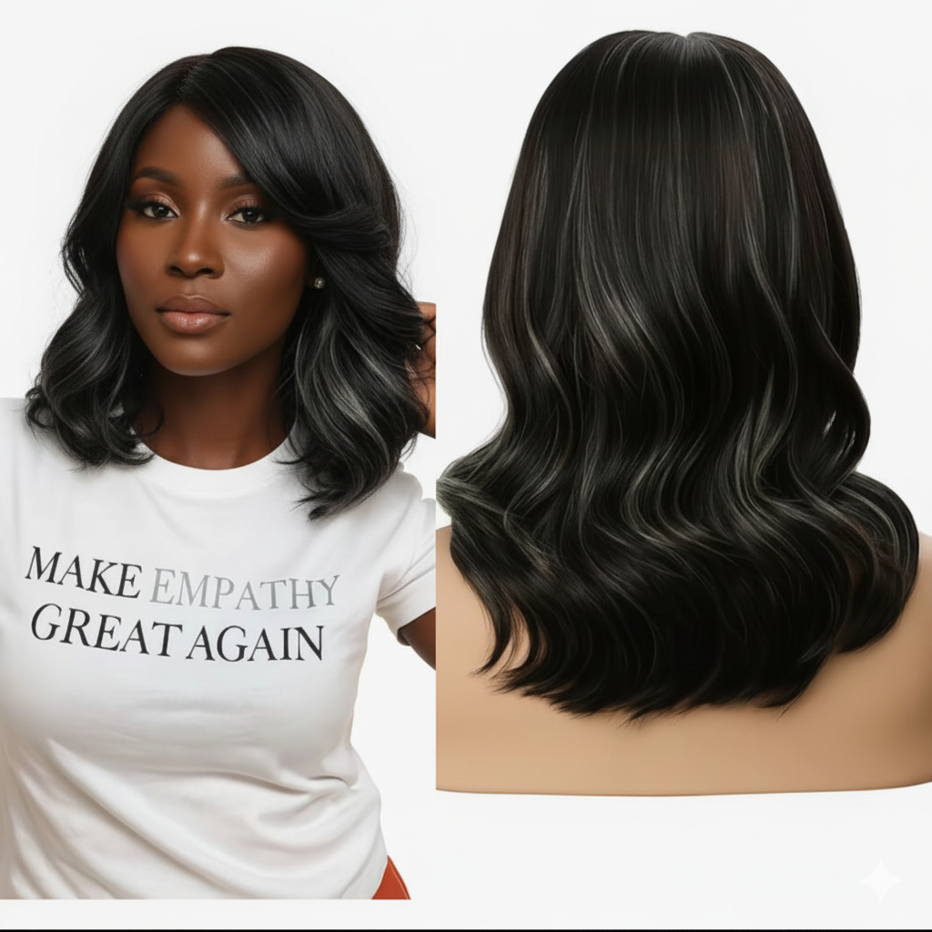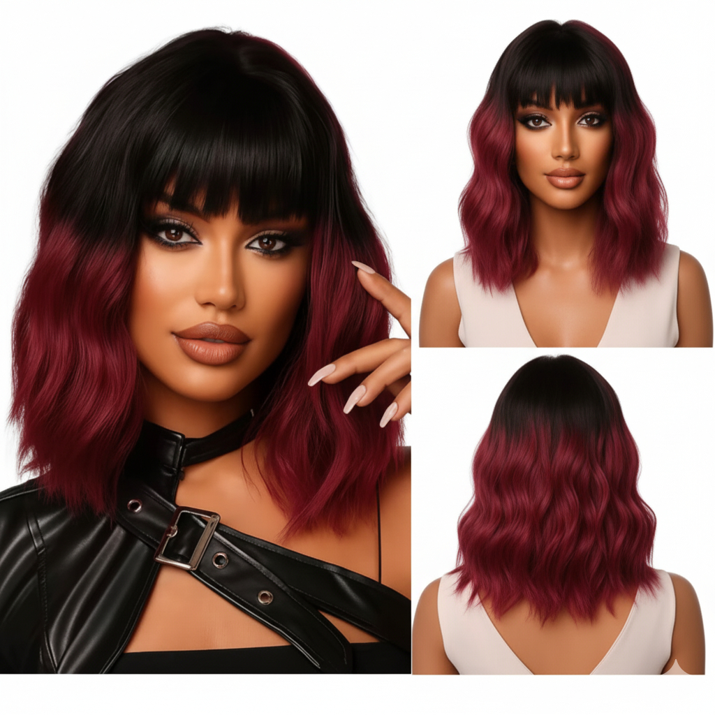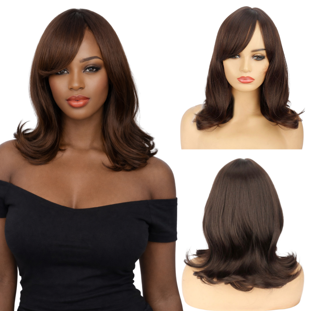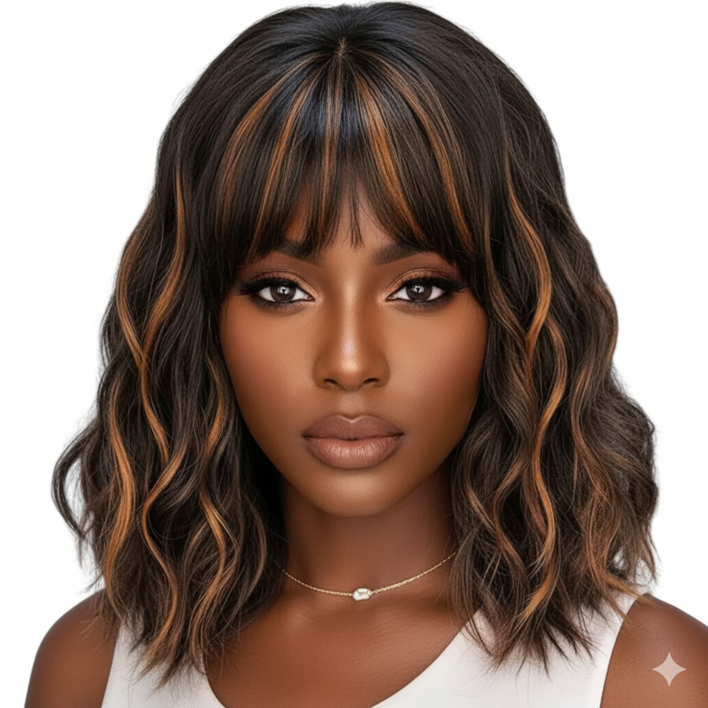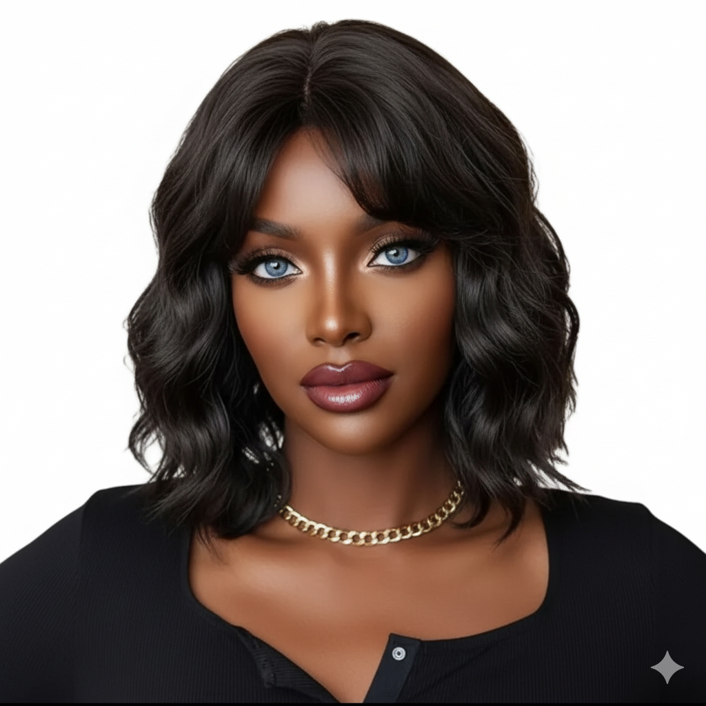 Peruca Wig Lace Curta Ondulada Com Franja 40cm + Wig Cap