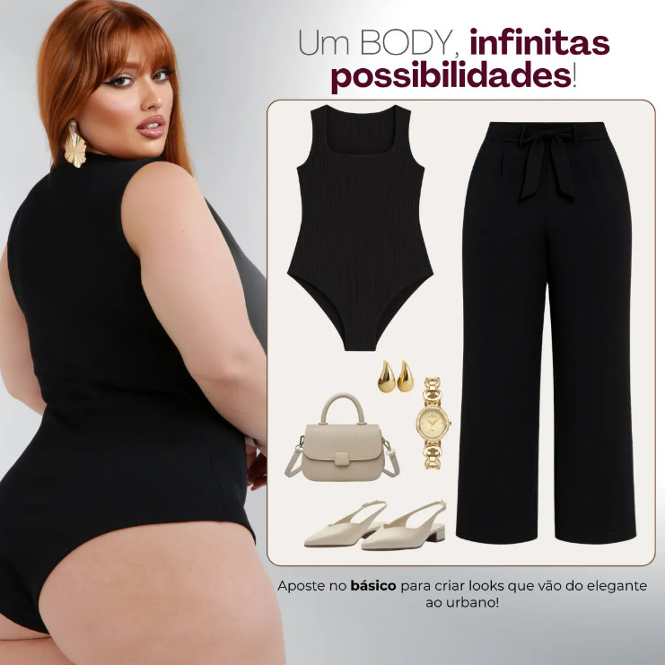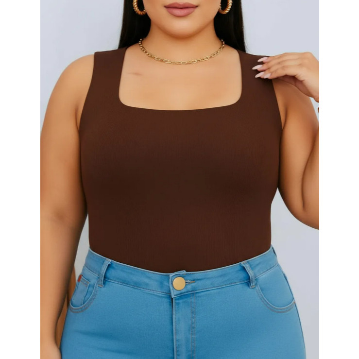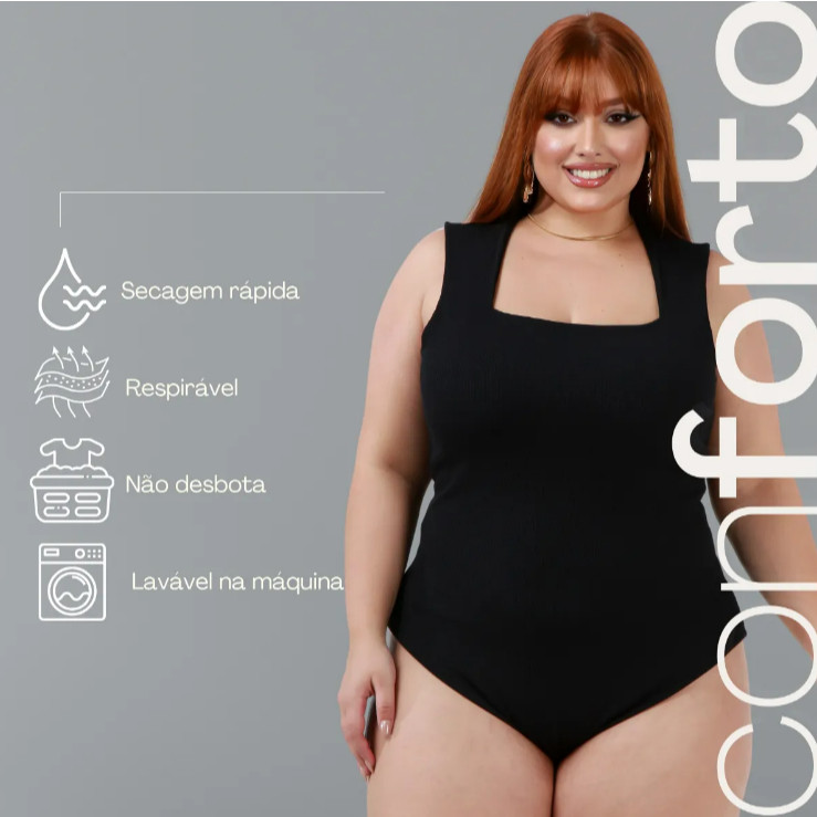 Kit 3 Body Feminino Plus Size 48 ao 50 GG, G1, G2, G3 Decote Quadrado Moda Praia Suplex