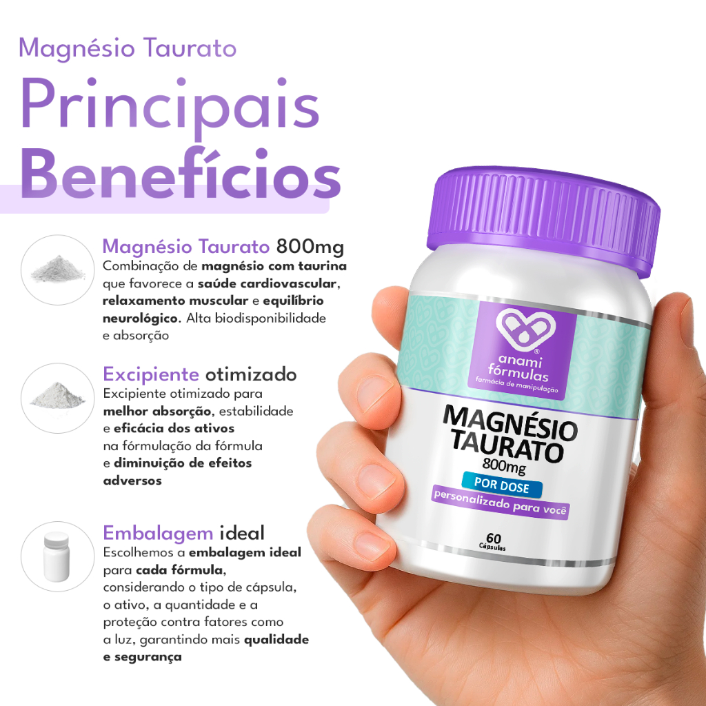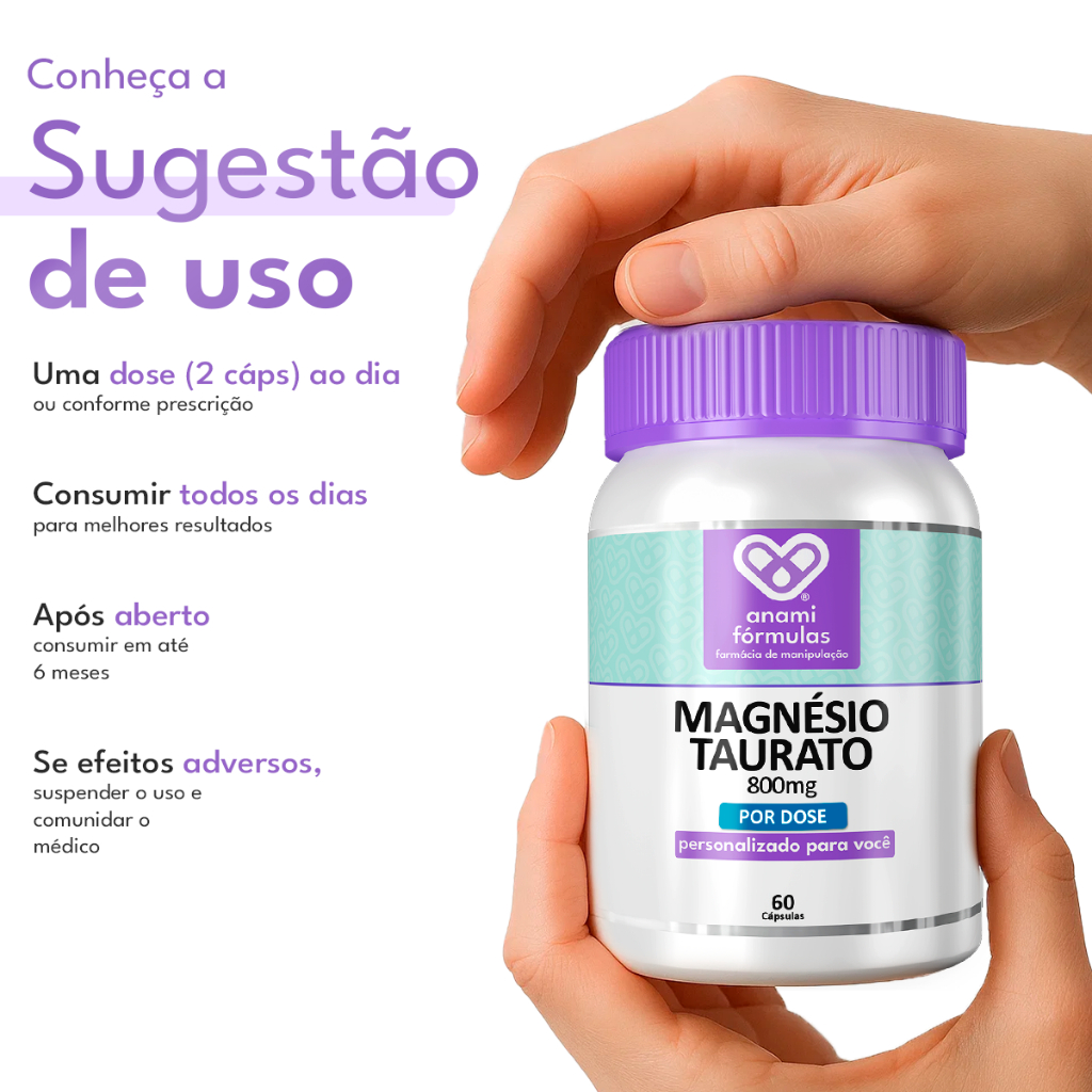 Magnésio Taurato 800mg 60 Cáps | Alta Absorção, Sistema Nervoso, Coração Saudável, Relaxamento, Sono