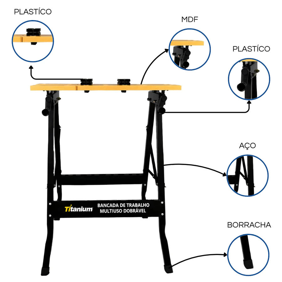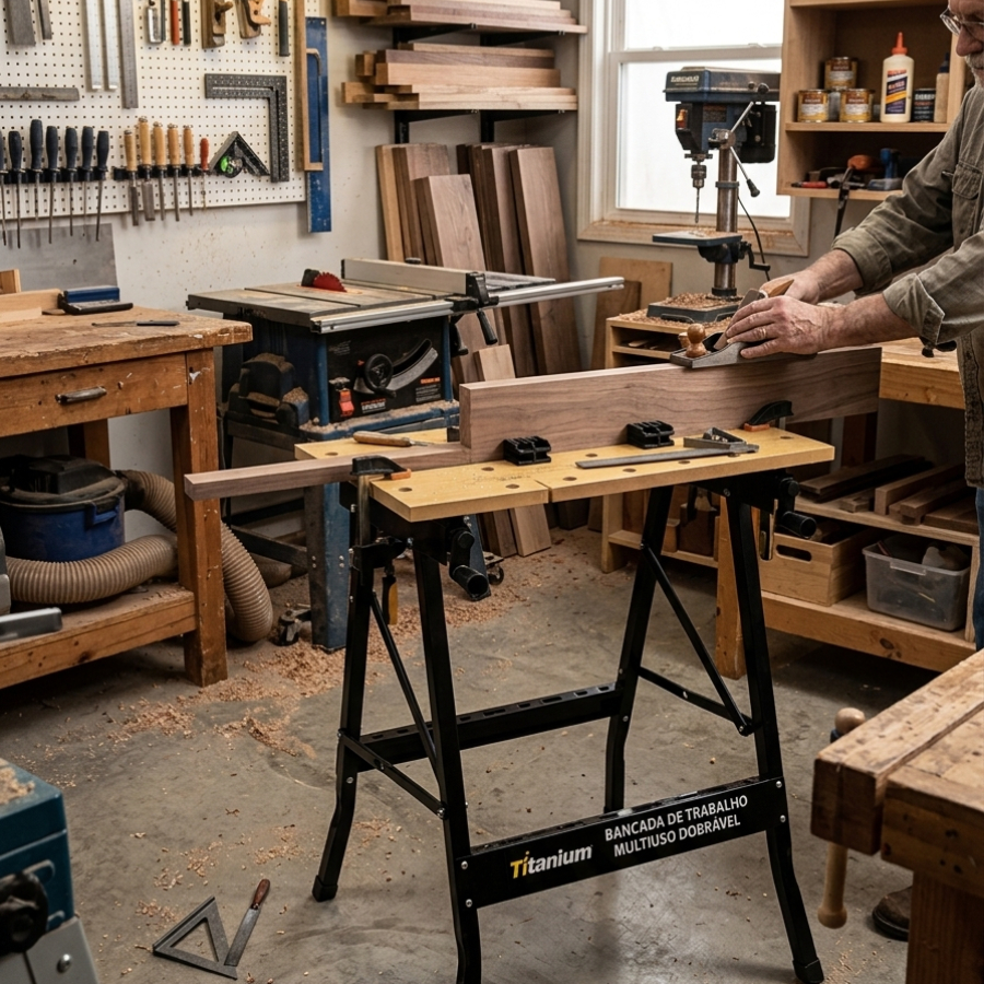 Bancada de Trabalho Multiuso para Marceneiro Bancada Portátil Dobrável para Ferramentas Titanium