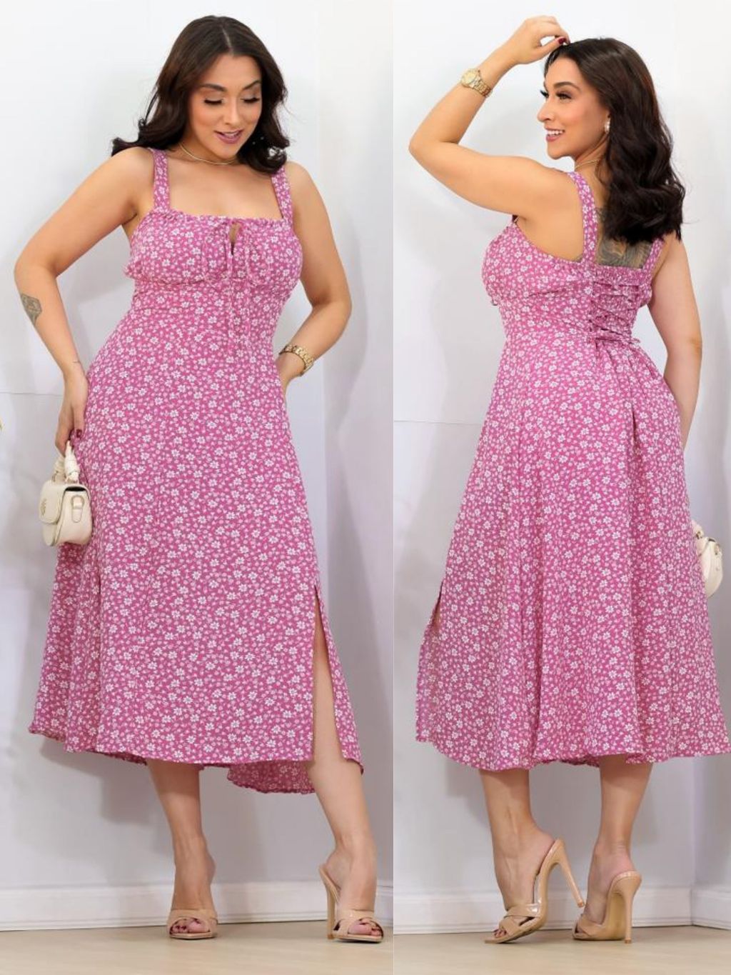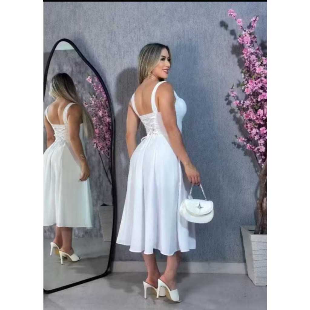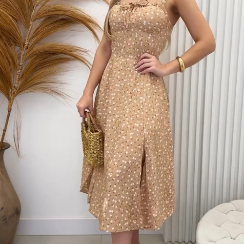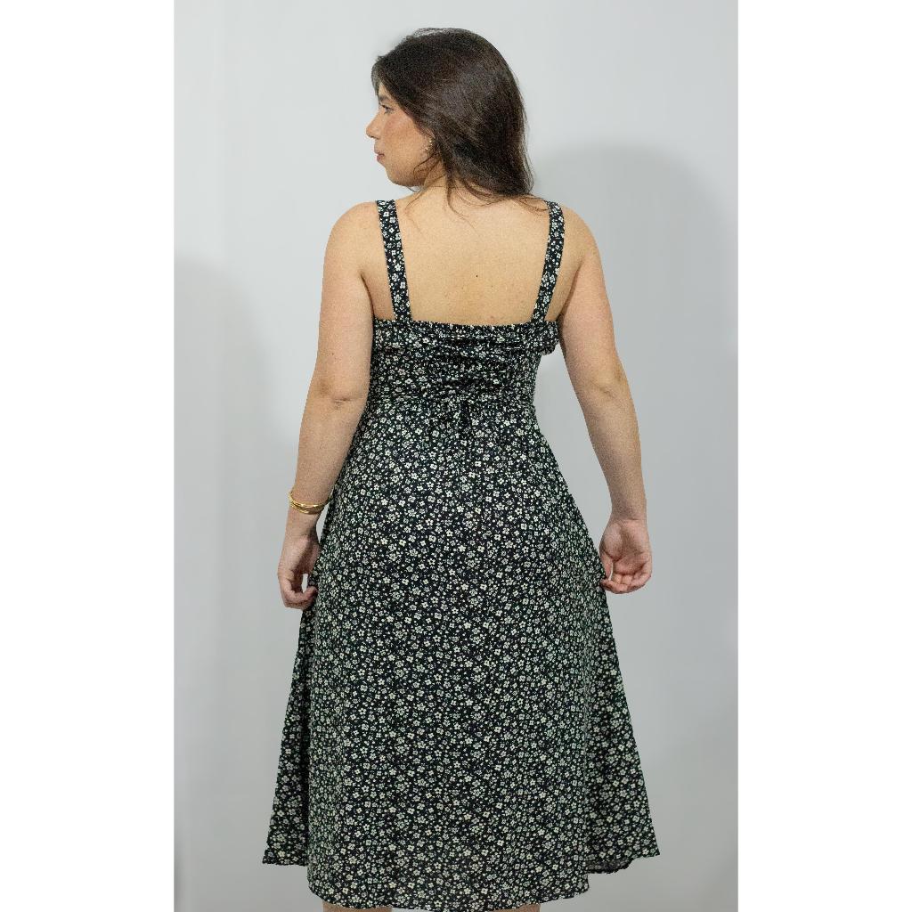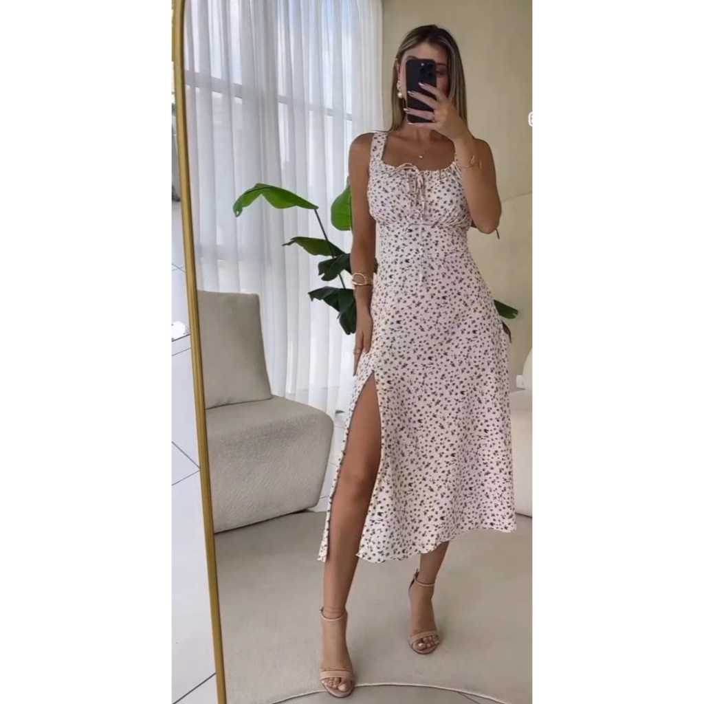 Vestido Midi Florido moda Elegante com Bojo Casual Verão Madrinha