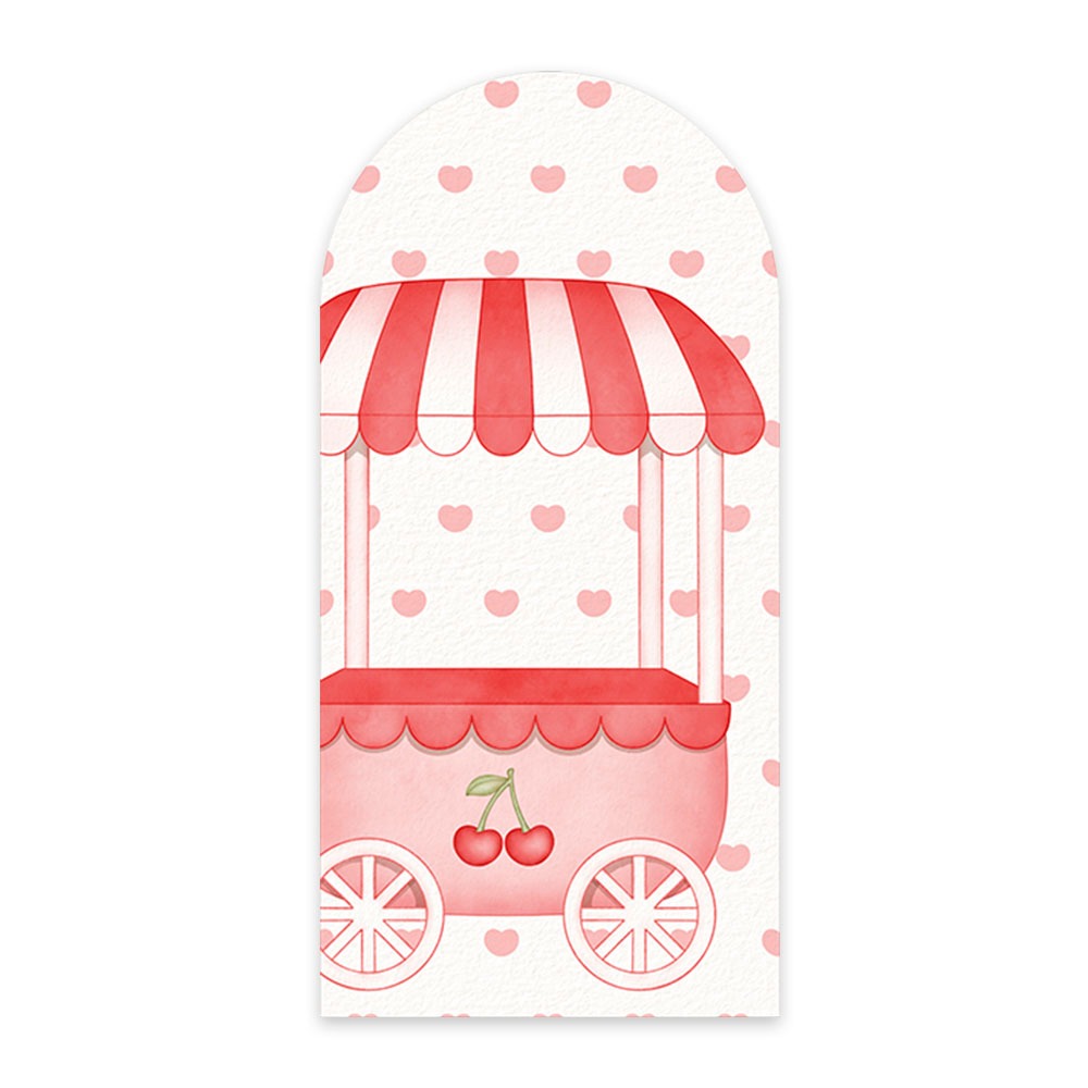 Kit Capas Painel Sublimado Tema Cerejinha Festa de Aniversário + Trio de Capas de Cilindros
