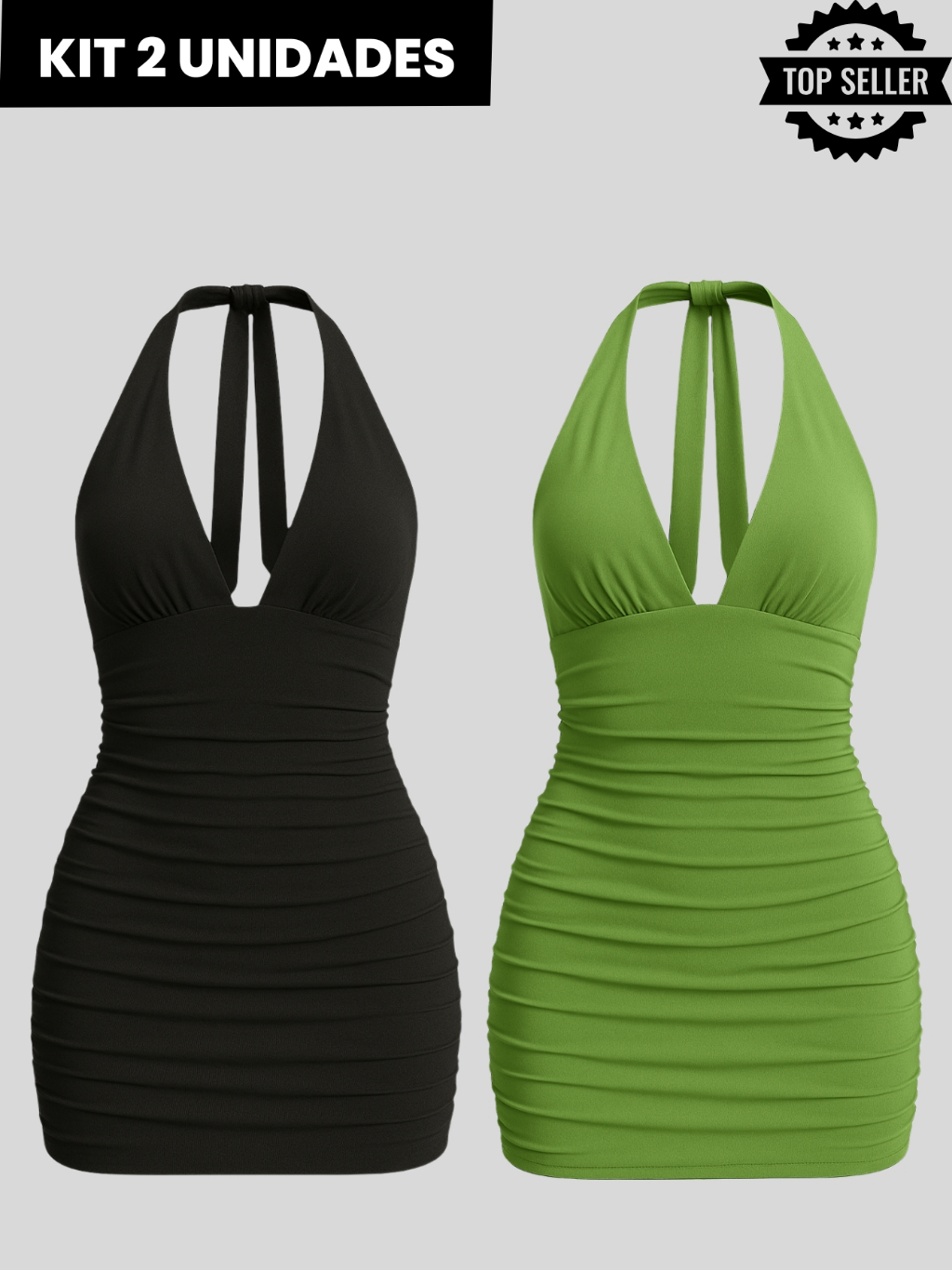 Kit 2 Vestidos Feminino Curto Frente Única | Costas Nua com Amarração