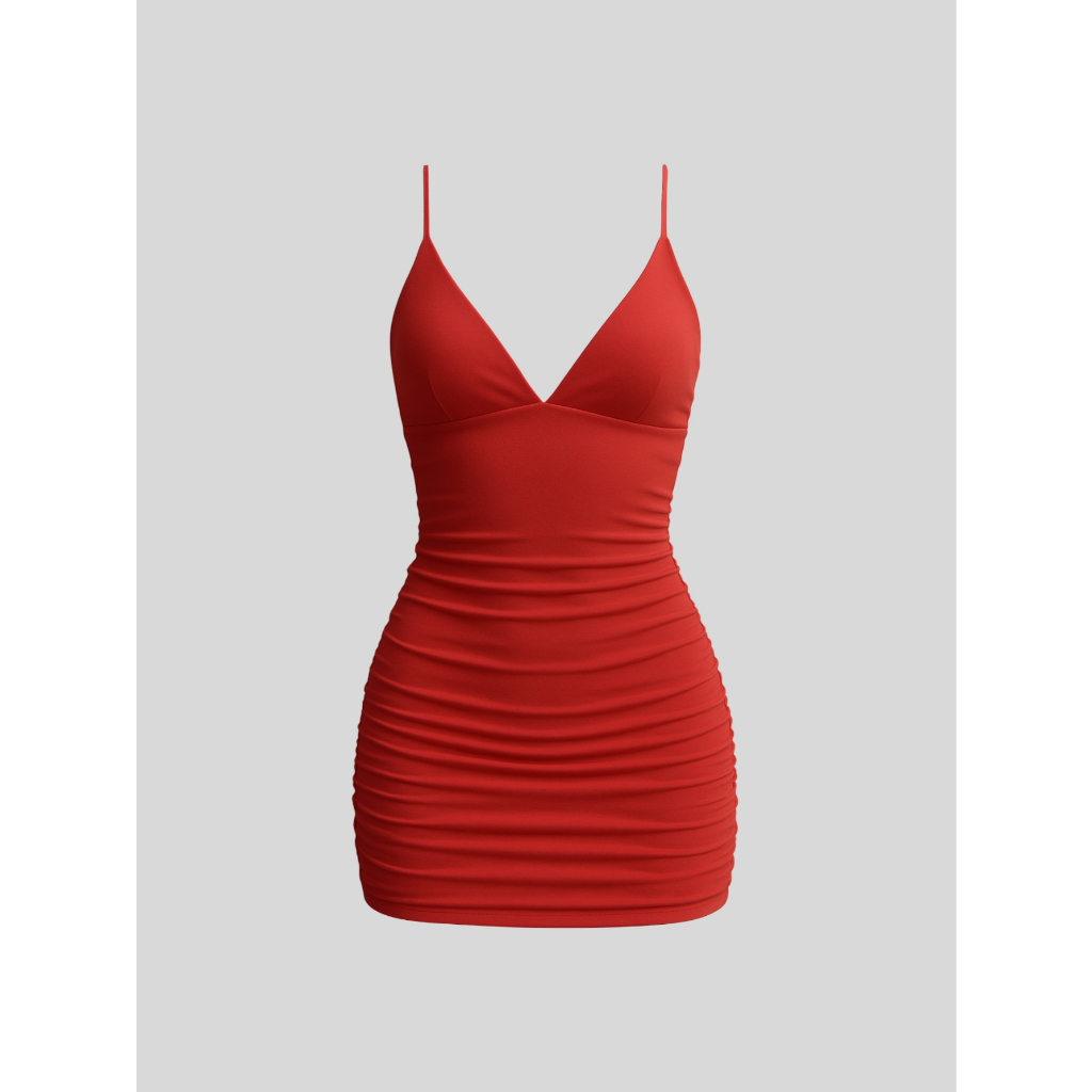 Vestido Feminino Tubinho Curto Alça Fina Feminino Franzido Lateral Ajustável Moda Festa Casual Confortável
