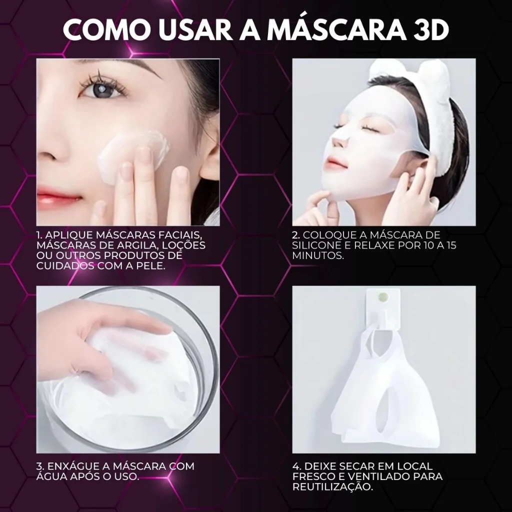 Máscara Facial Silicone Hidratação Reutilizável P/ Skincare lifting firmador Resultado Profissional