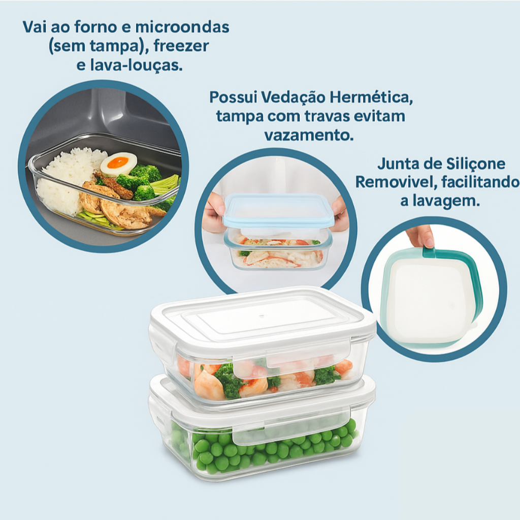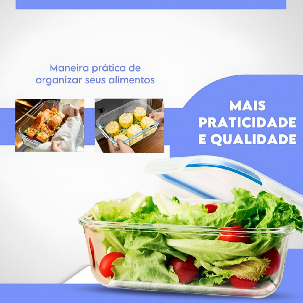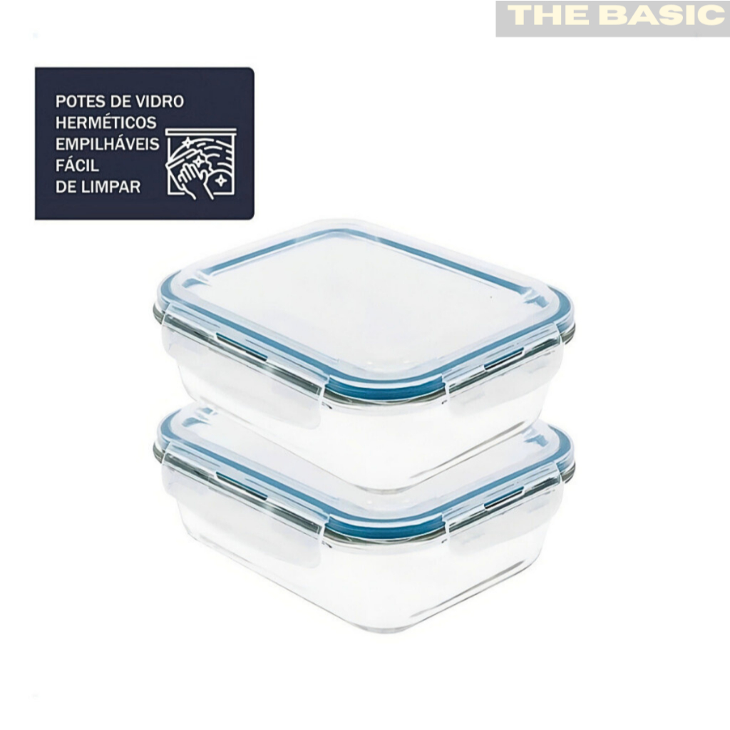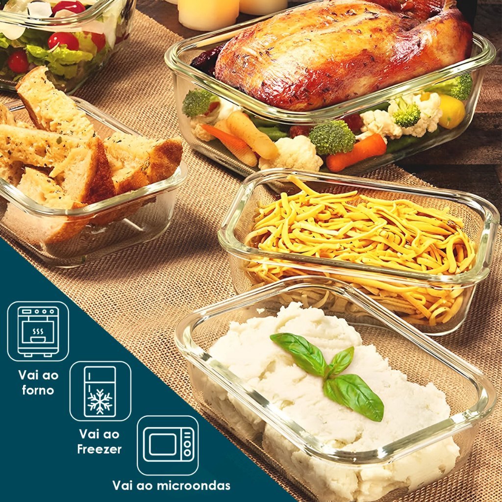Kit 10/5 Potes Hermético 640ml Vidro 4 Travas Marmita Armazenamento De Alimentos Cozinha