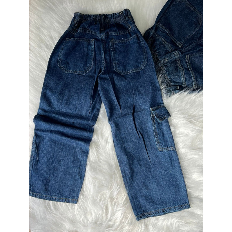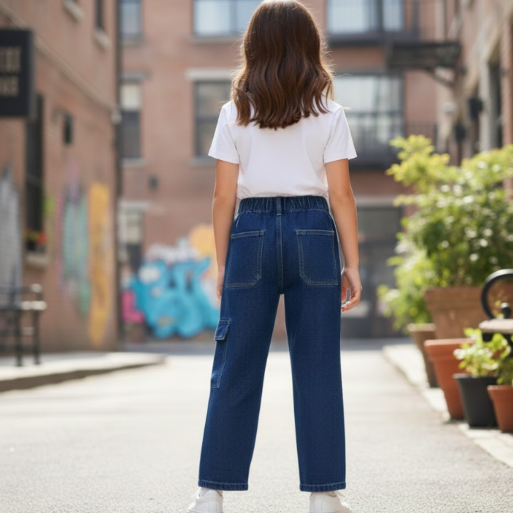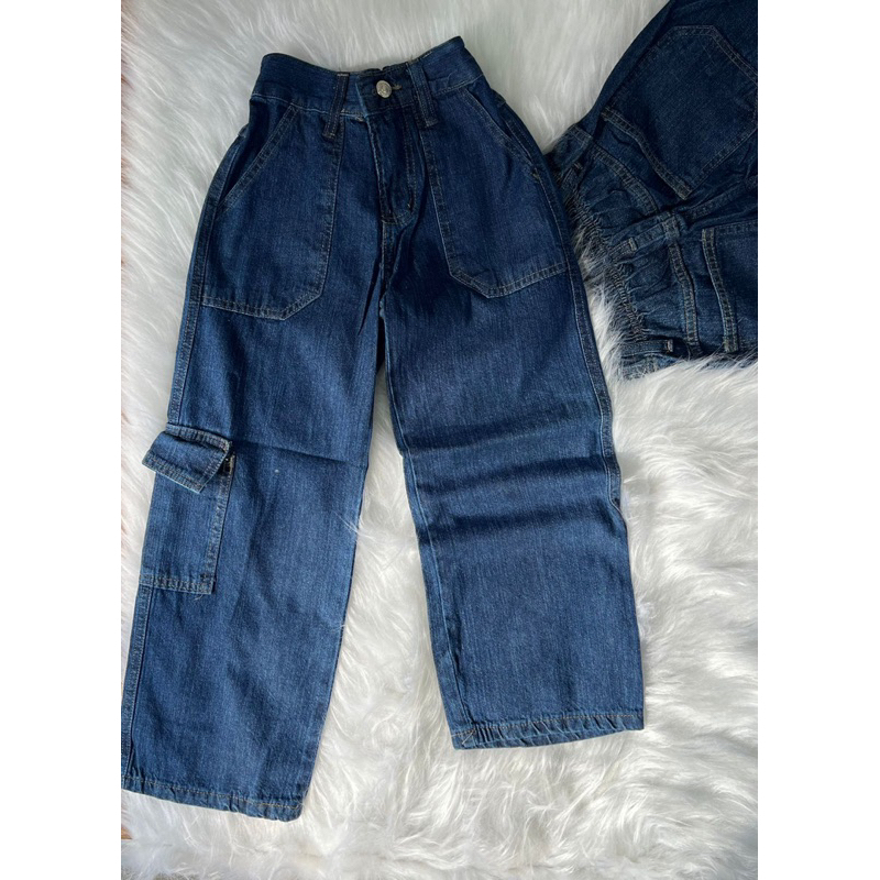 Calça Jeans Feminina Cargo 1 Bolso Lateral Azul Reta Menina Adolescente Infantil Juvenil