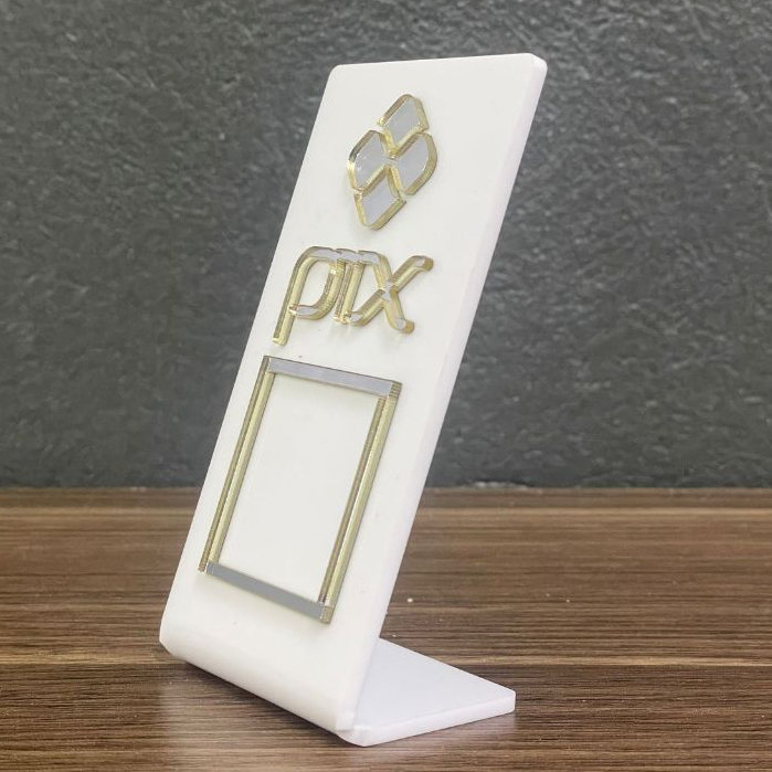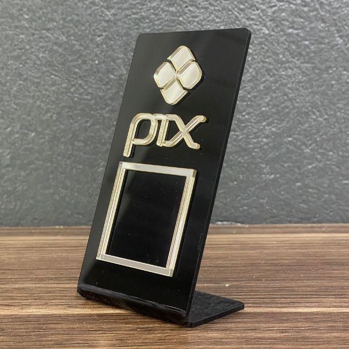Placa Pix Balcão QR Code Pagamento Loja Display Em Acrílico Espelhado