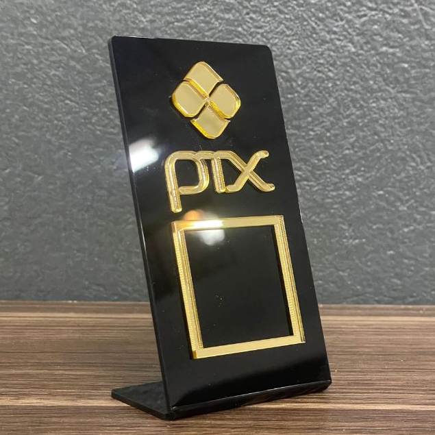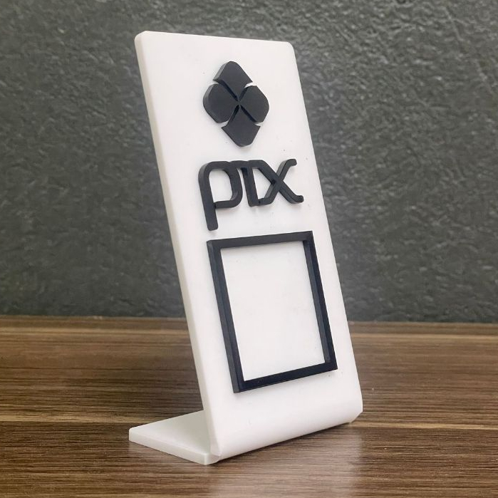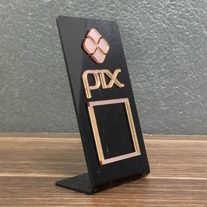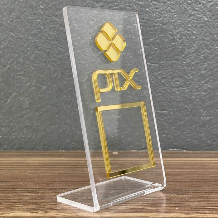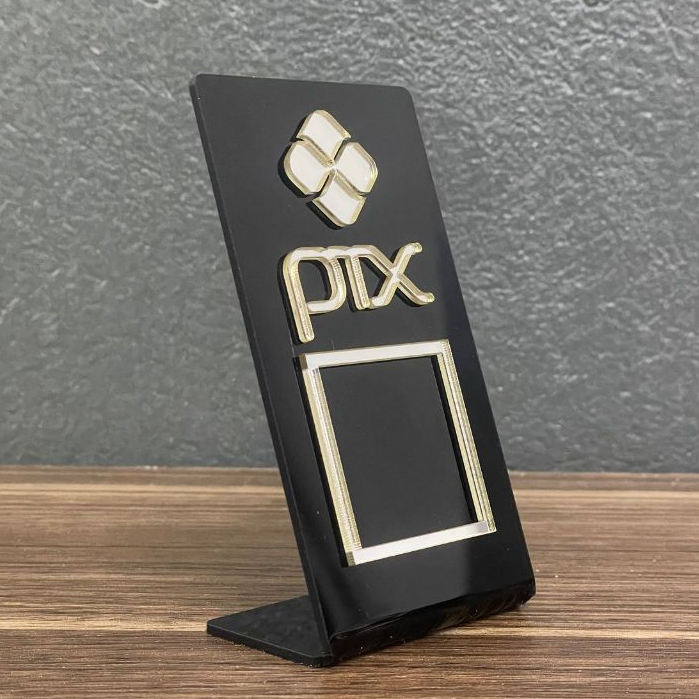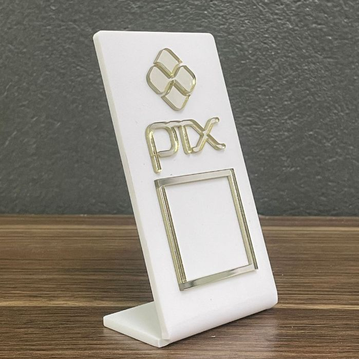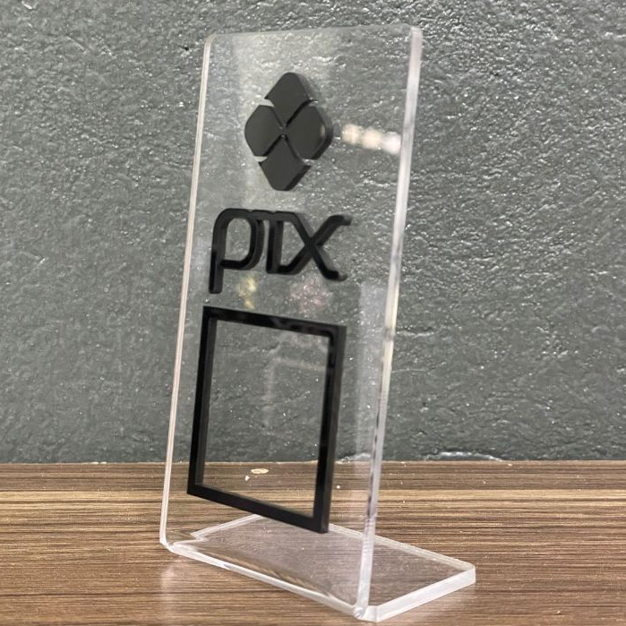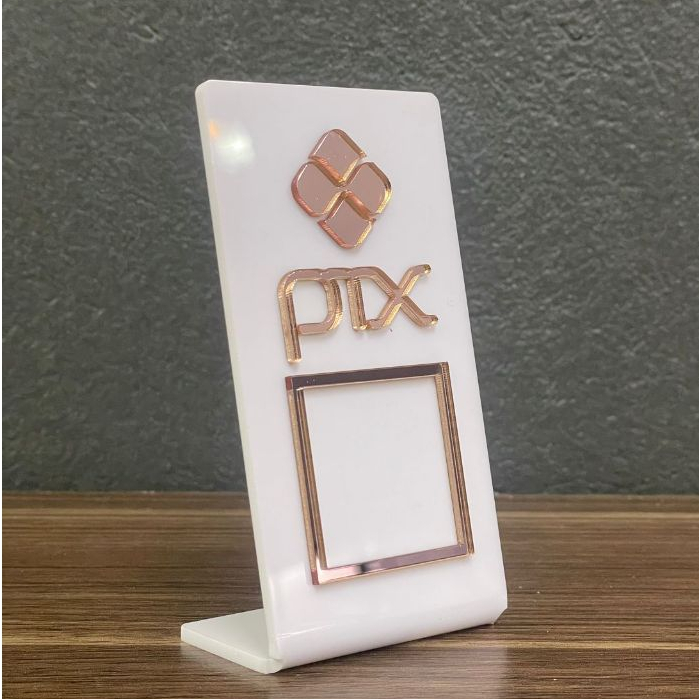 Placa Pix Display Mesa Balcão Em Acrílico QR Code PIX Pagamento Espelhado