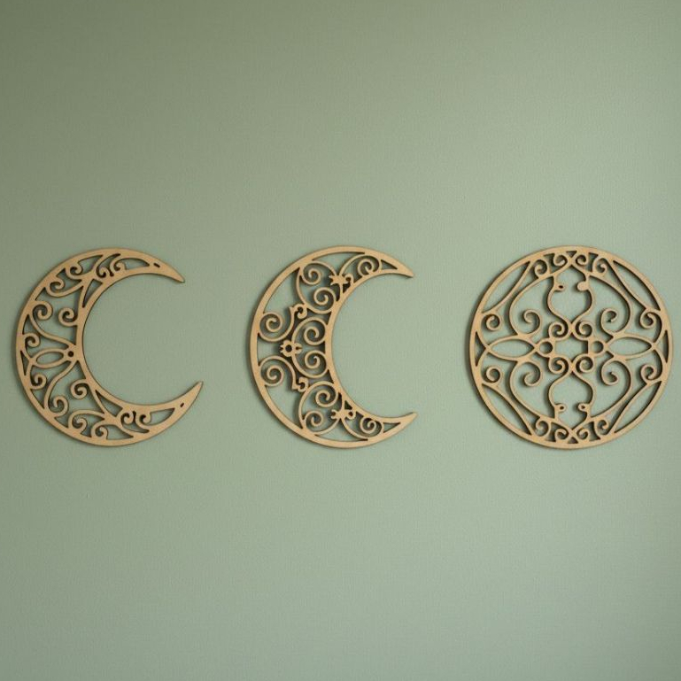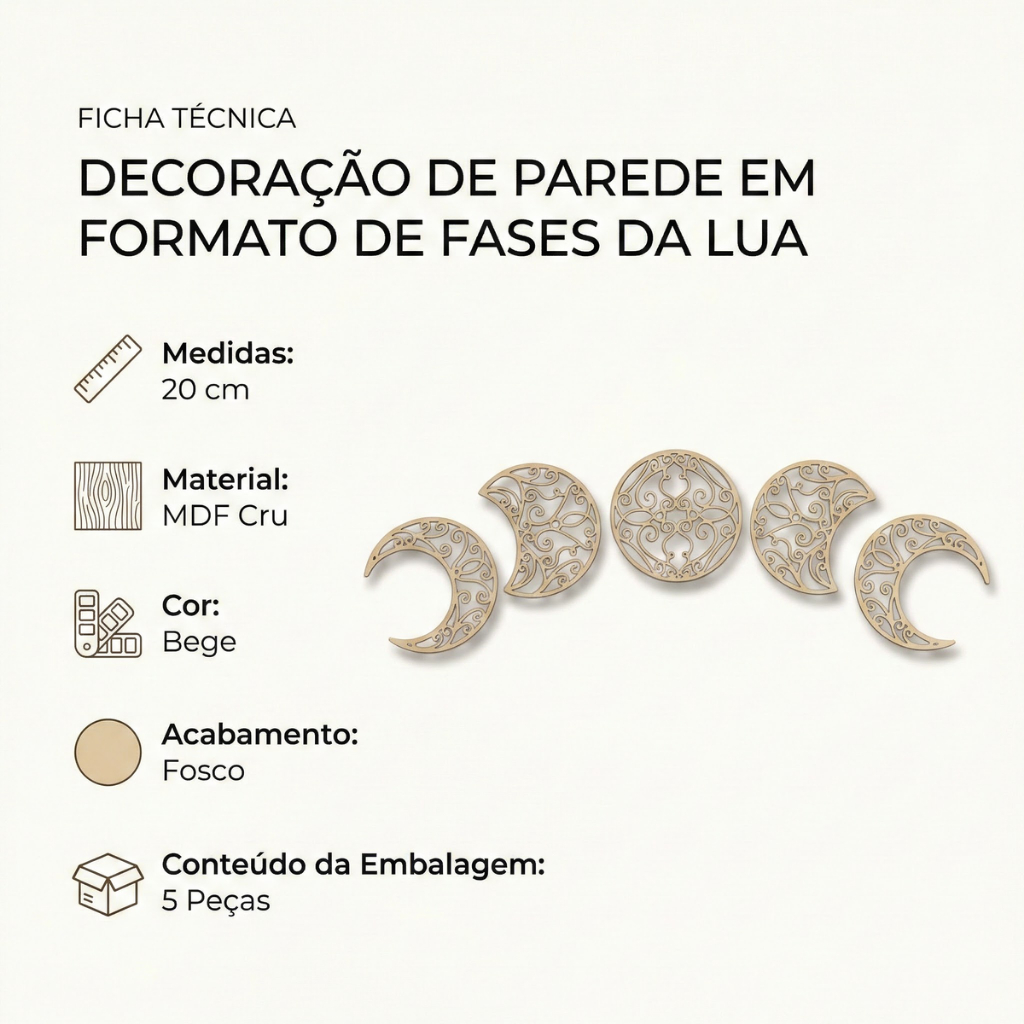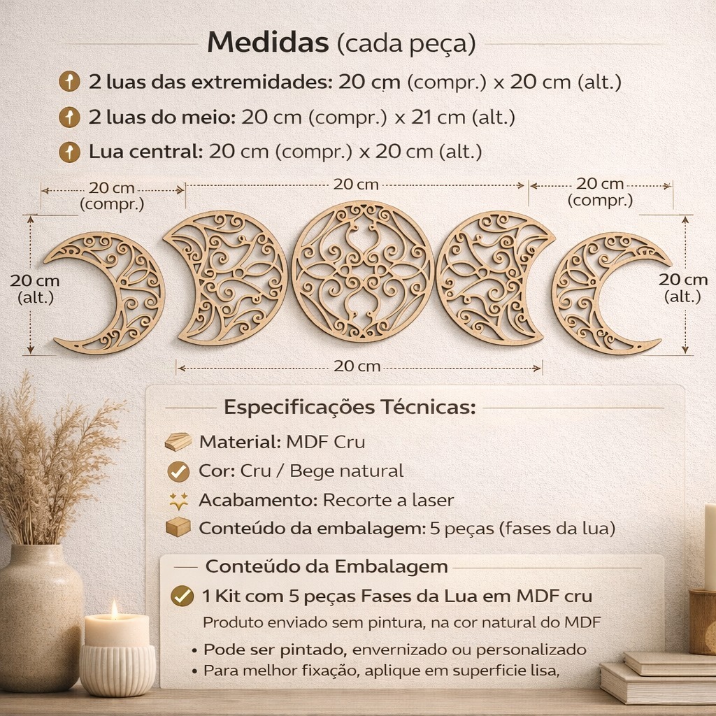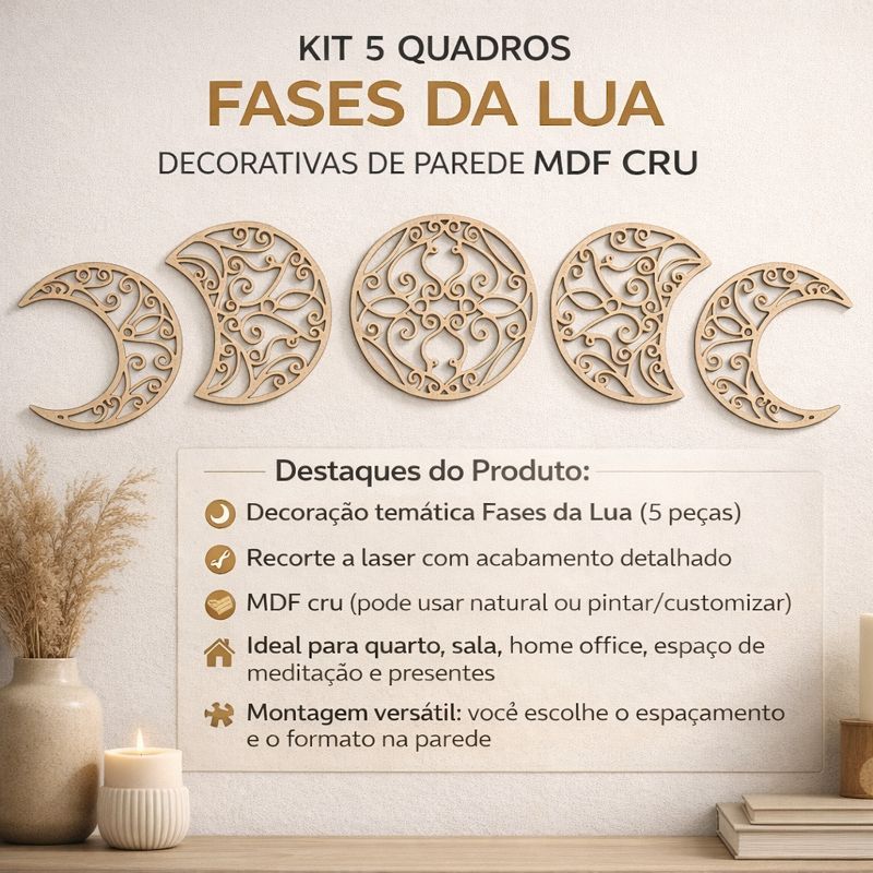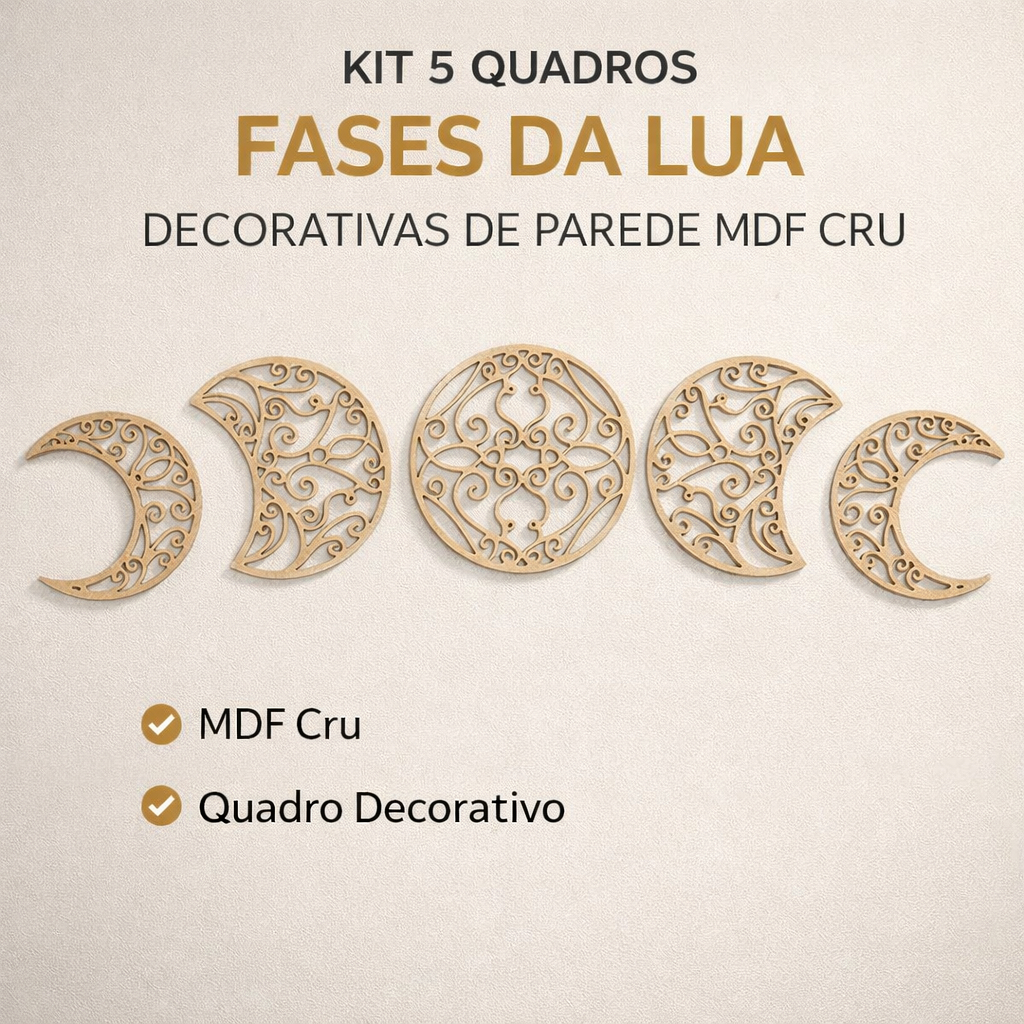 KIT 5 Quadros Fases Da Lua Decorativas De Parede MDF Cru