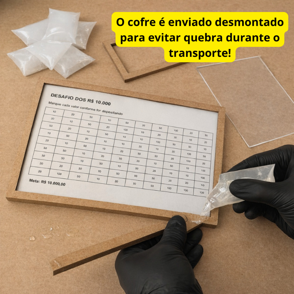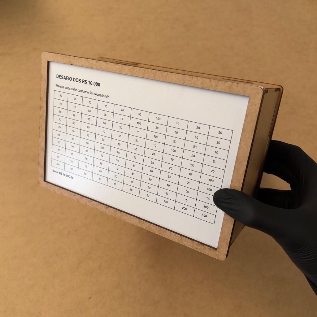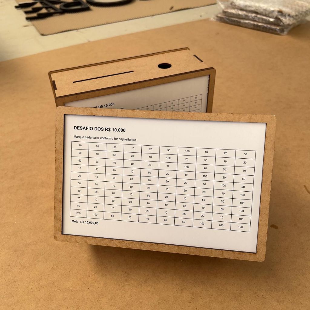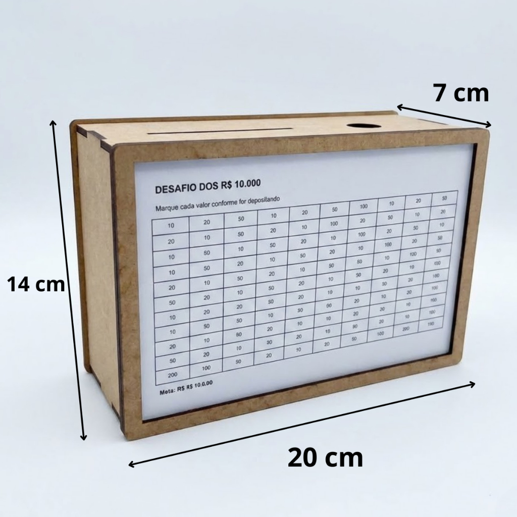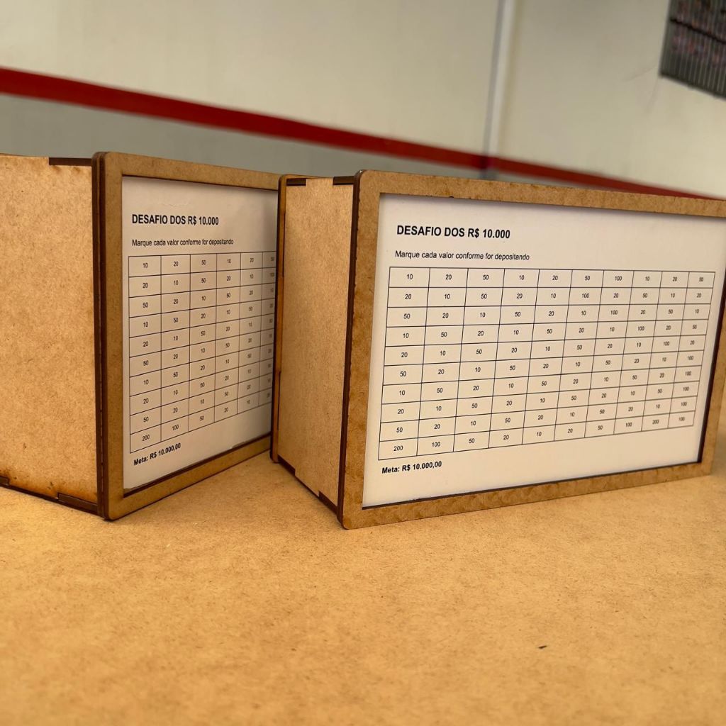 Cofre Desafio 1mil 5mil 10mil Reais Dinheiro em MDF Poupança Japonesa