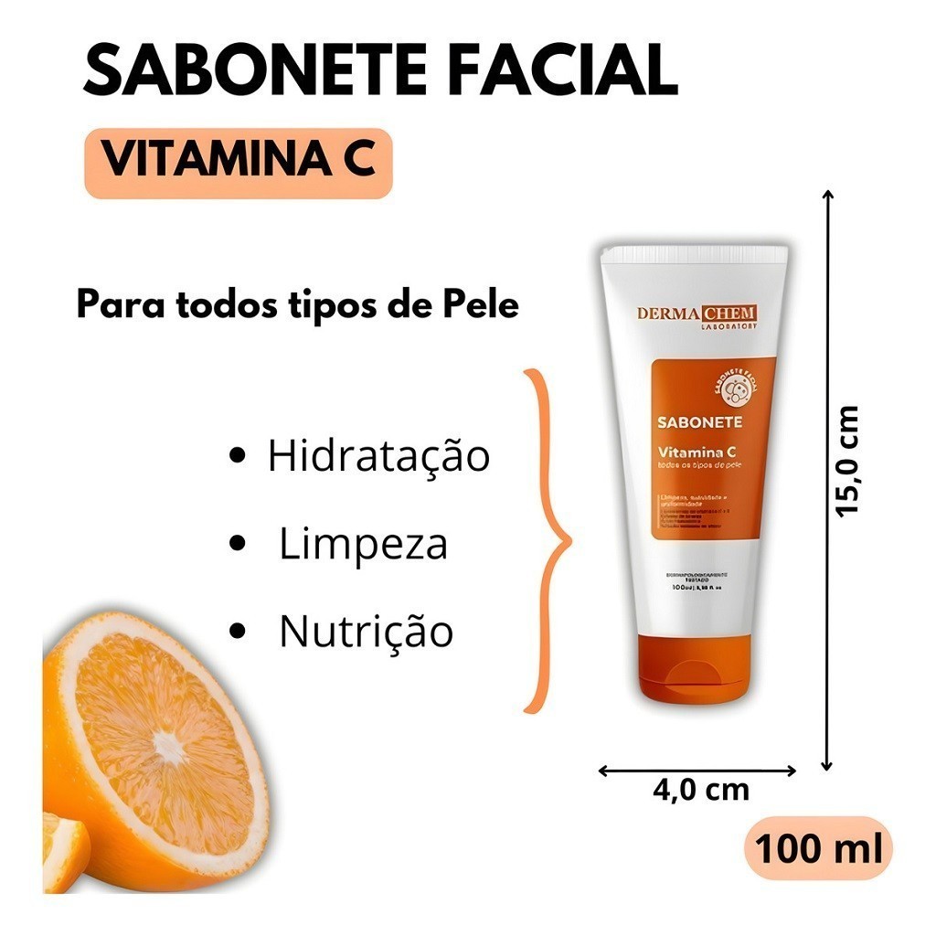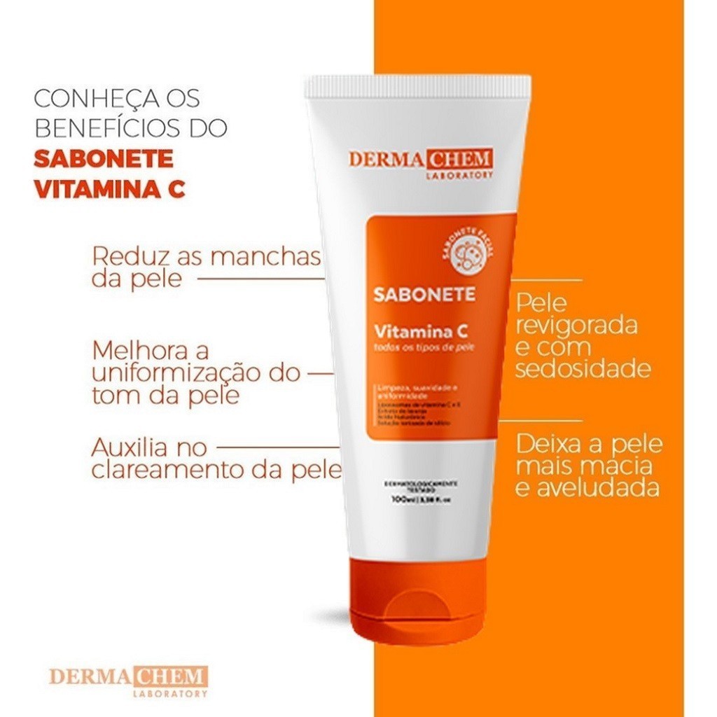 🍊Sabonete Líquido Clareador e Anti-idade Dermachem 100ml Vitamina C e E + ácido hialurônico ✨