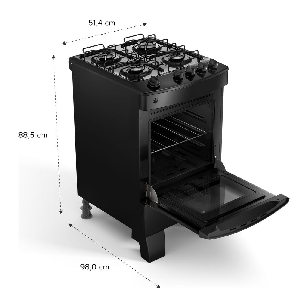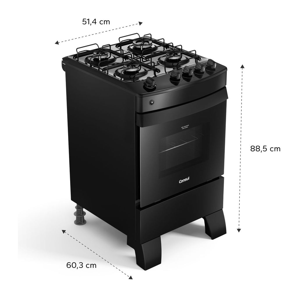 Fogão 4 Bocas Preto Consul com Mesa Esmaltada - CFO4ZAE
