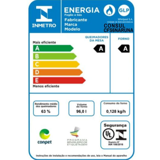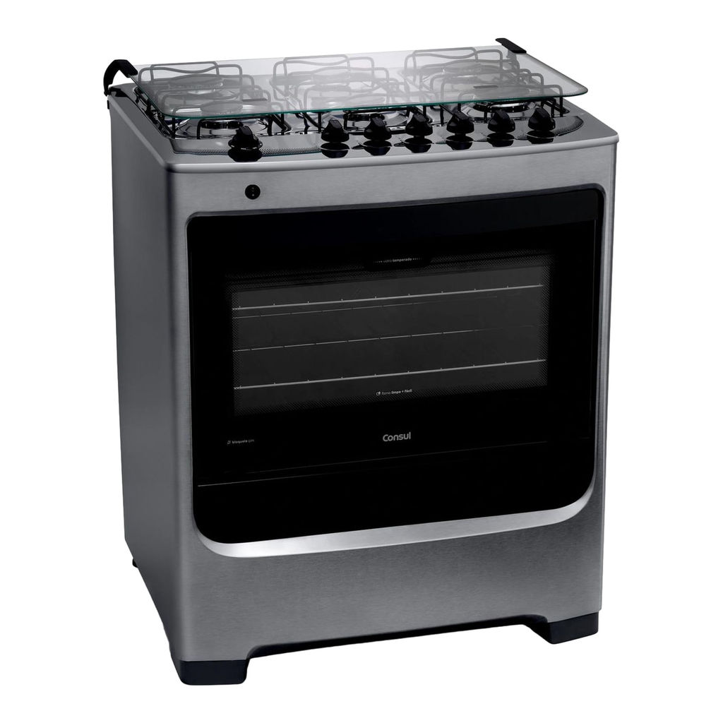 Fogão Consul 6 Bocas Cor Inox com Botões Removíveis e Vidro Interno Vedado - CFS6NAR