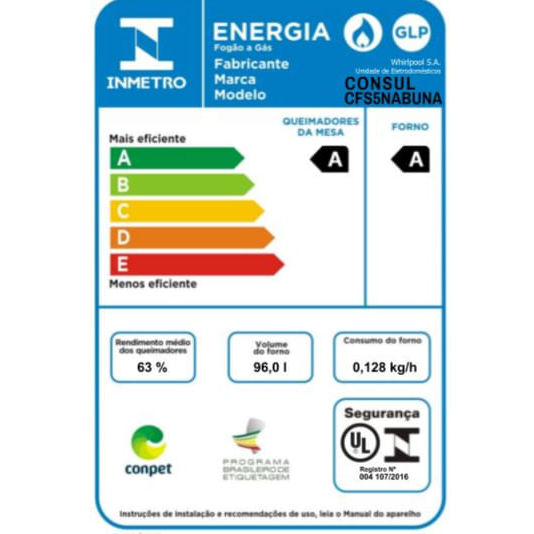 Fogão de Piso Consul 5 Bocas Branco com Acendimento Automático e Botões Removíveis - CFS5NAB